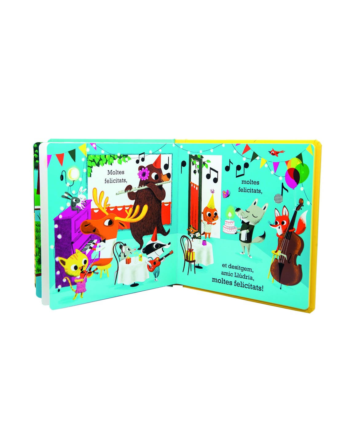 Quatre harmoniosos amics fan cap a una celebració molt especial! Un llibre interactiu que inclou la melodia de la cançó de l’aniversari amb diferents instruments, un final espectacular i una espelma d’aniversari sorpresa!