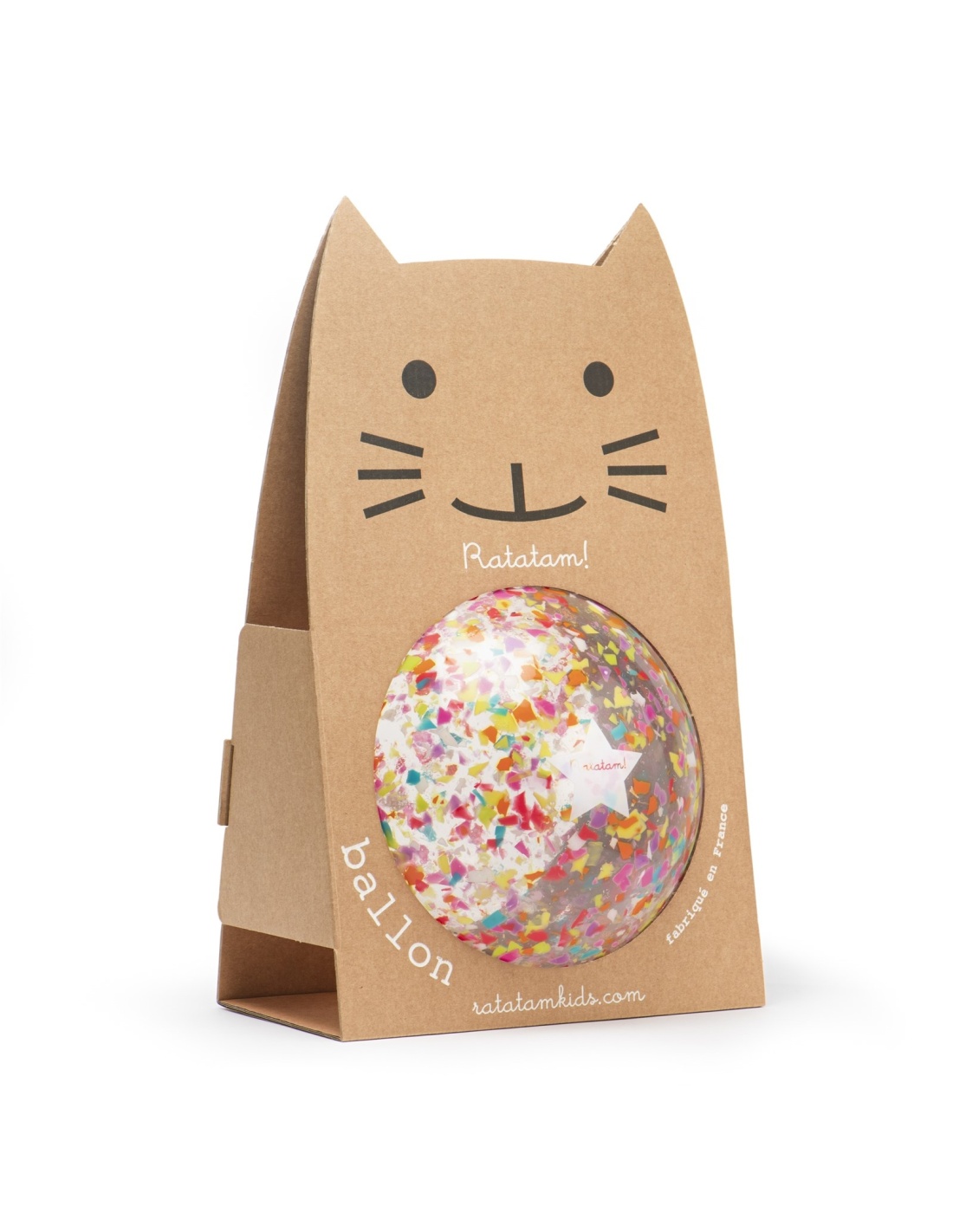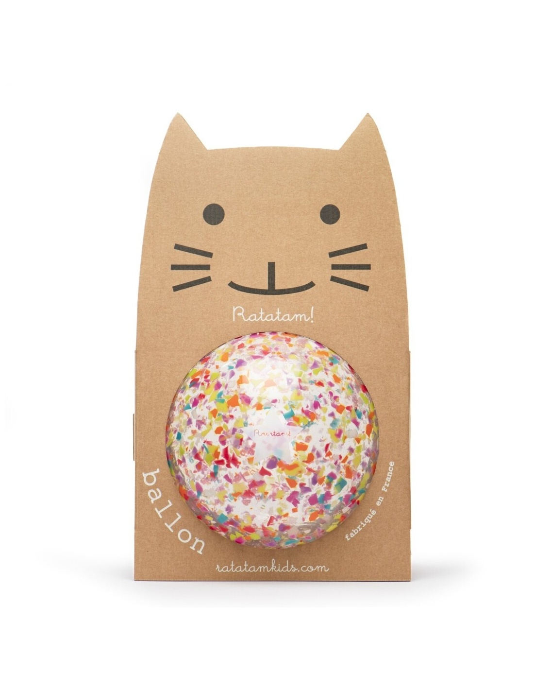 Con un diseño de confetti y una válvula para poder inflar si fuera necesario.
