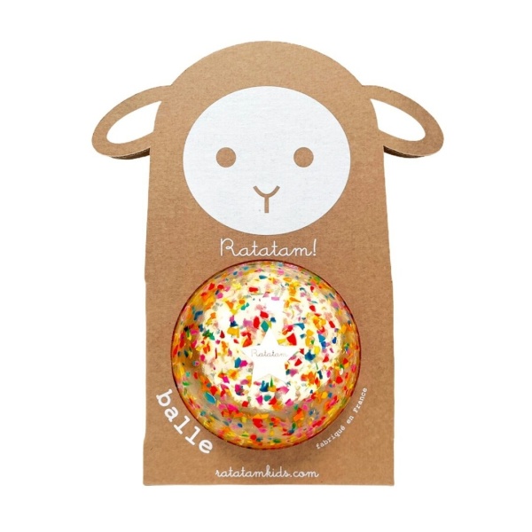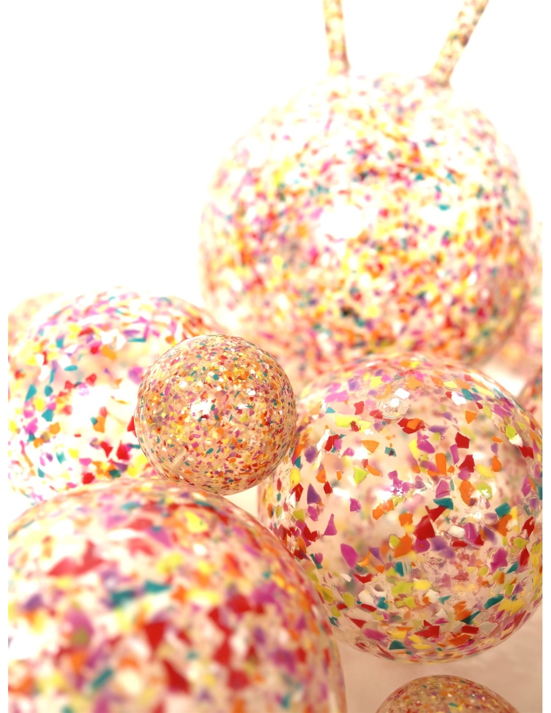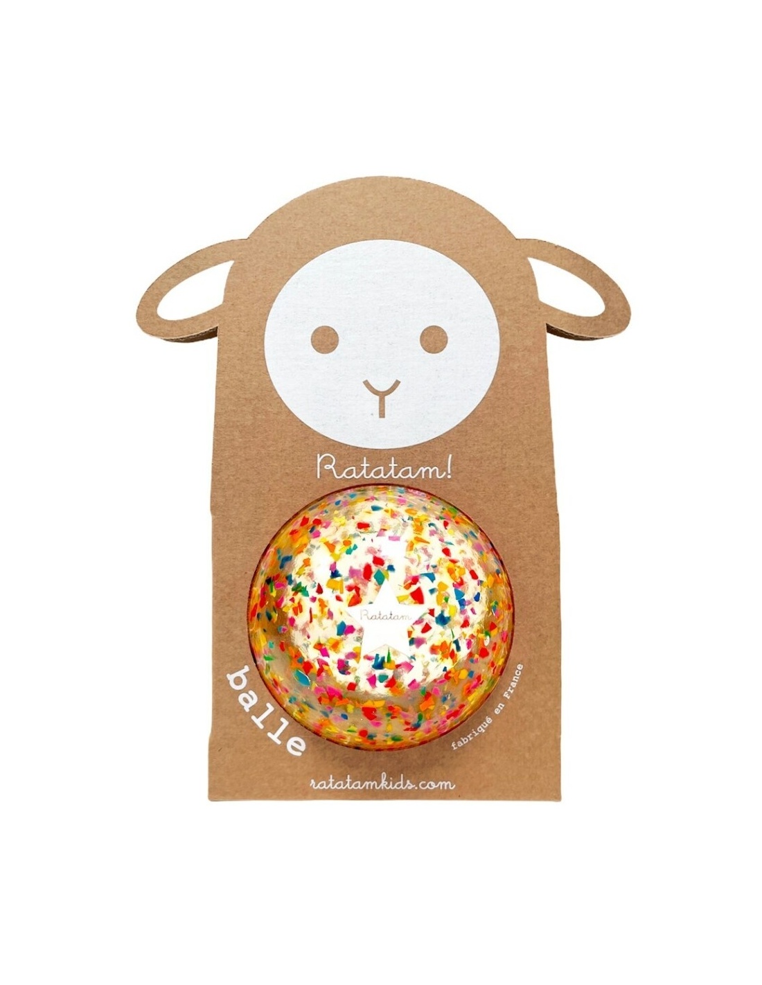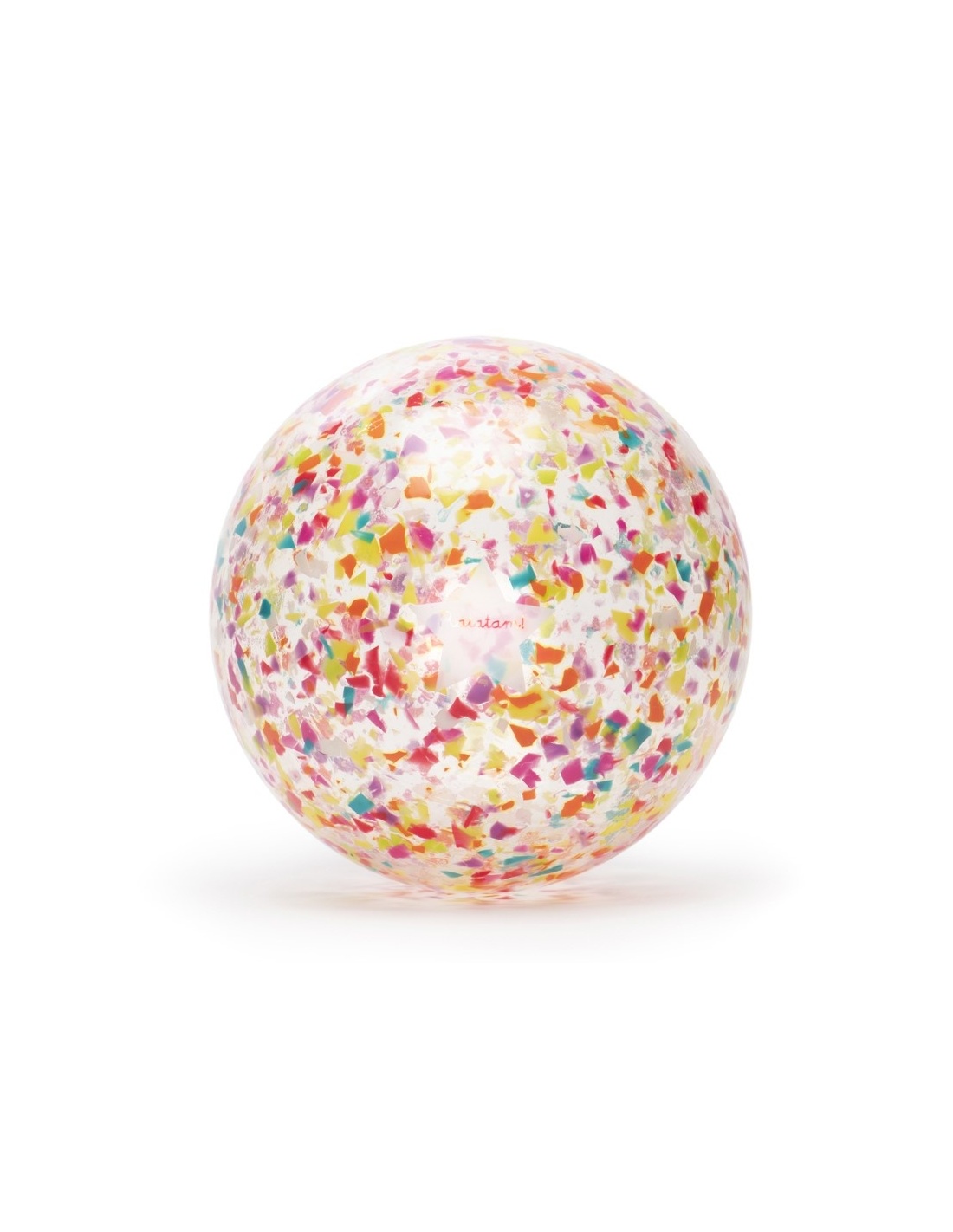 Con un diseño de confetti y una válvula para poder inflar si fuera necesario.