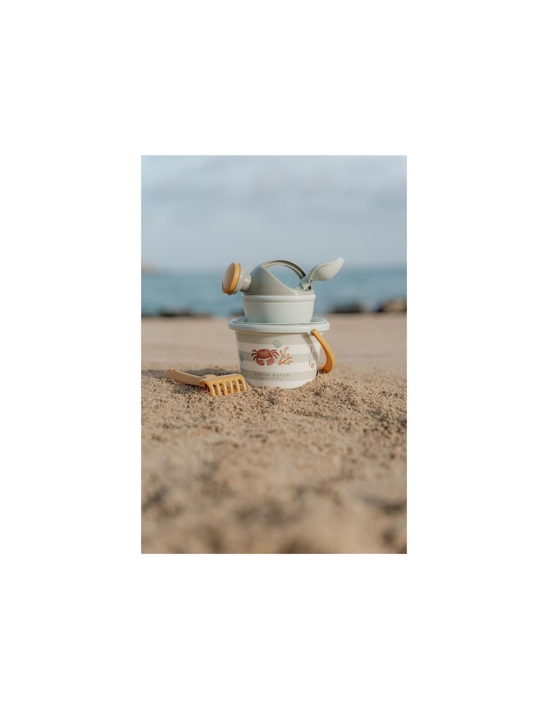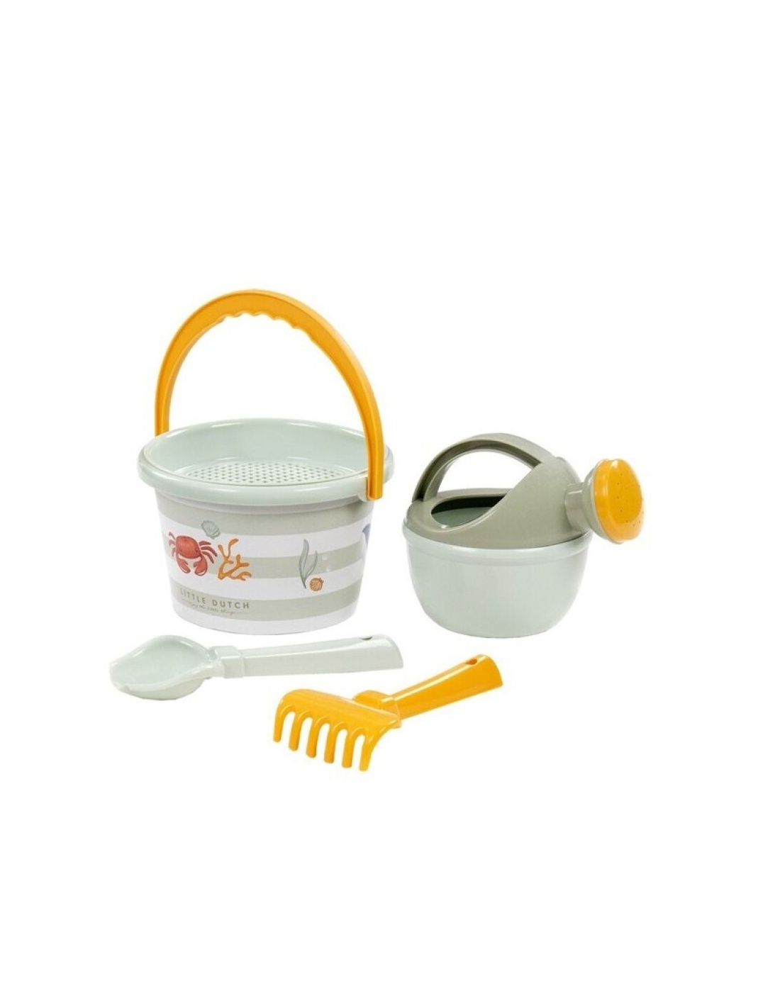 Diversión asegurada en la arena con el set de playa Fresh Verde de Little Dutch! Con un diseño encantador y un suave tono verde, este set incluye pala, rastrillo y molde, ideales para construir castillos, buscar tesoros y dejar volar la imaginación. Fabricado con materiales resistentes, es el compañero perfecto para horas de juego bajo el sol.