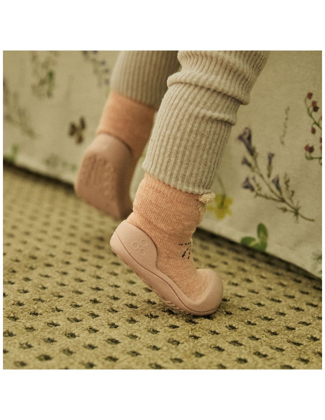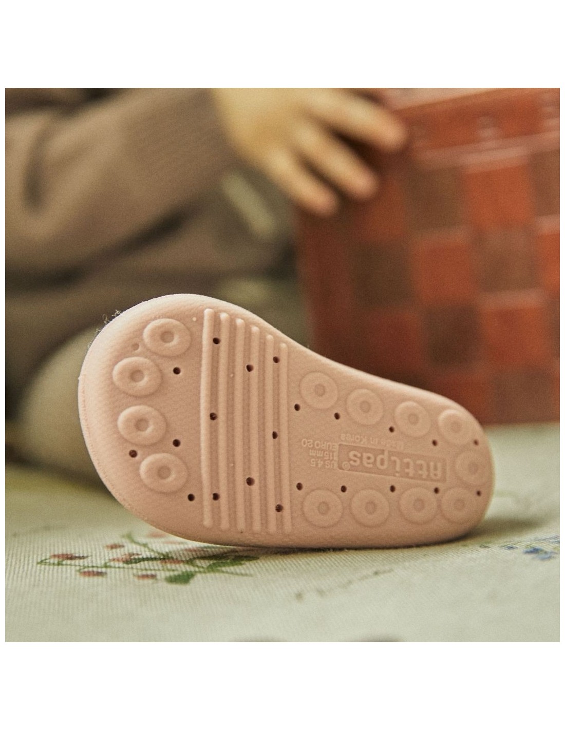 Rabbit llega para los peques más dulces. Un modelo minimalista en tonos rosa diseñado en tejido vigoré y con detalle de orejitas de conejo en relieve.