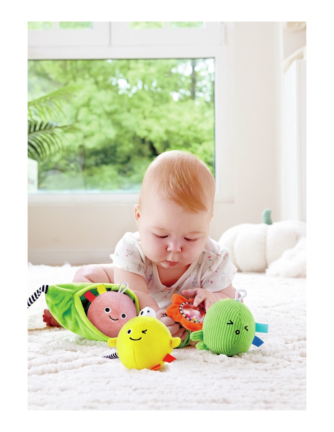 Los amigos de Pea Pod es un juguete sensorial versátil diseñado para cautivar e implicar a los bebés a la vez que fomenta habilidades clave para su desarrollo. Con 3 guisantes blandos con texturas y sonidos únicos, estimula la exploración sensorial, el agarre y la coordinación mano-ojo. Segura, duradera y diseñada para ser portátil, la cápsula se engancha fácilmente a cochecitos, bolsas o asientos de coche, lo que la convierte en la compañera de viaje perfecta. Un juguete de desarrollo de alta calidad que atrae a padres, madres y cuidadores.