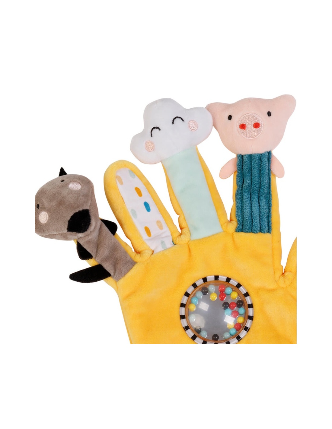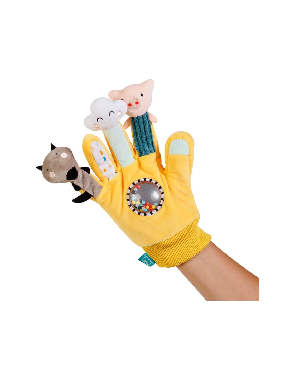 Este guante de cuentos te ayudará a captar su atención visual mientras le cuentas sus primeros cuentos e historias. Este modelo incluye una marioneta de Caperucita Roja, un lobo y una flor. Está compuesto de telas de distintos estampados y texturas para estimular su sentido del tacto y en el centro de la palma de la mano, tiene una esfera con bolitas que estimulan su sentido del oído. Es un juguete ideal para empezar a interactuar con tu bebé y estimular su imaginación.