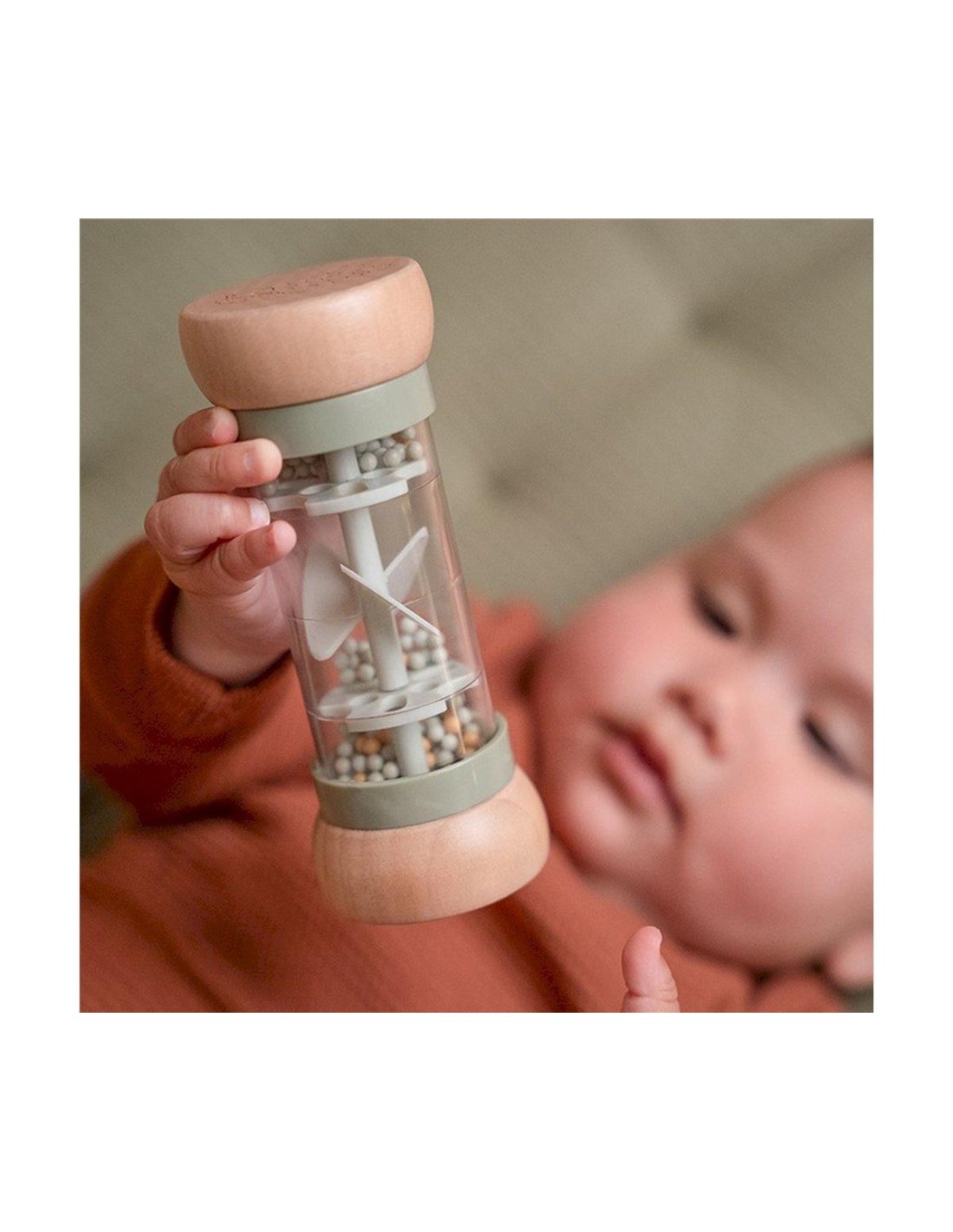 Dale la vuelta al sonajero de lluvia y las gotas se moverán hacia el otro lado haciendo suaves sonidos de gotas de lluvia. Estimulará el desarrollo sensorial y el talento musical del bebé. Las perlas en 3 colores diferentes caen por el tubo a través de pequeñas aberturas y hacen girar la hélice. El sonajero de lluvia está diseñado para manos pequeñas y de fácil agarre.