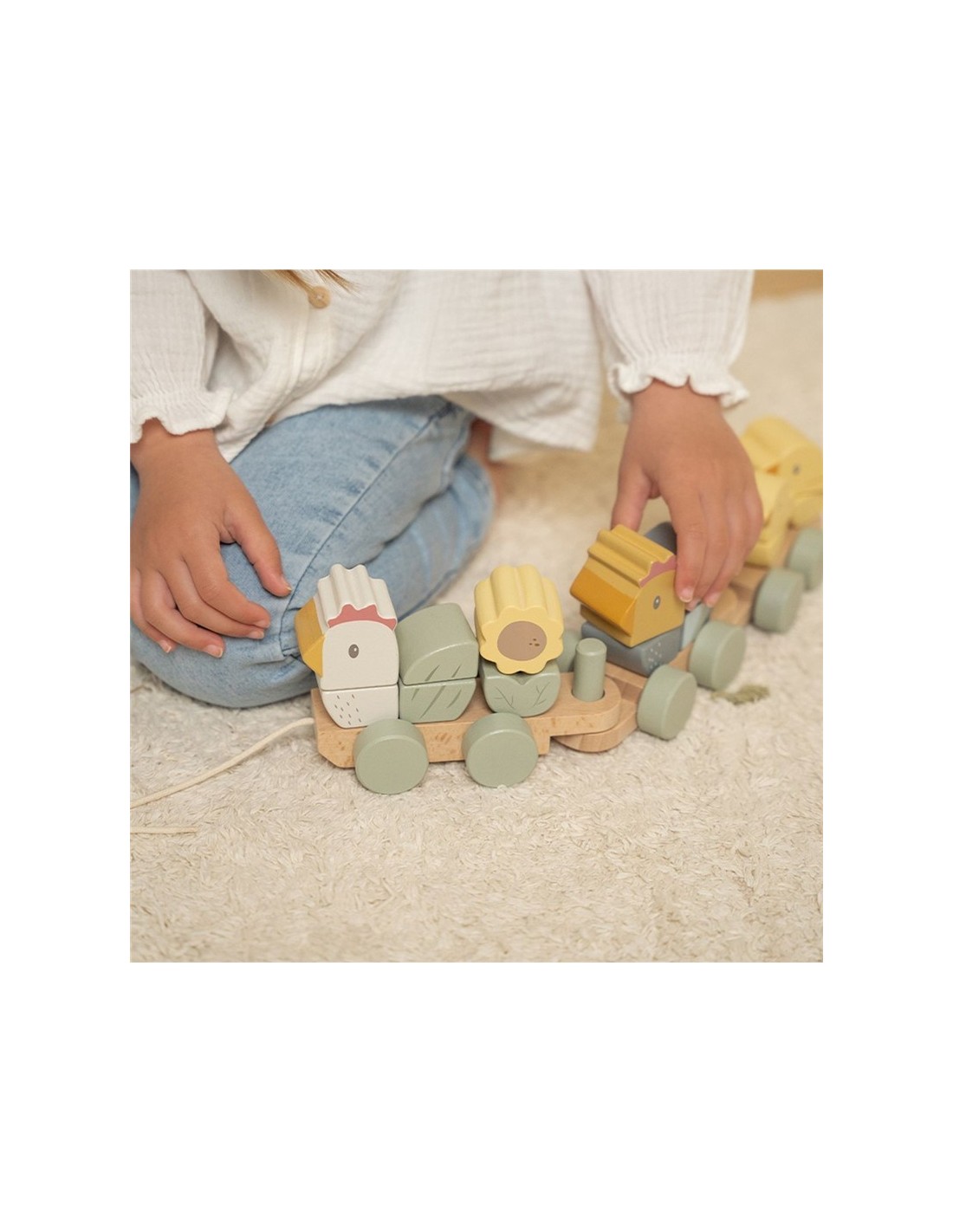 El precioso tren de madera de Little Dutch está ilustrado con gallinas y sus polluelos. Con bloques en varias formas y colores, puedes crear diferentes gallinas y polluelos cada vez. El tren consta de un total de 17 partes y mide aproximadamente 40 cm. Es divertido jugar con este juguete y también es un bonito accesorio para la habitación infantil.