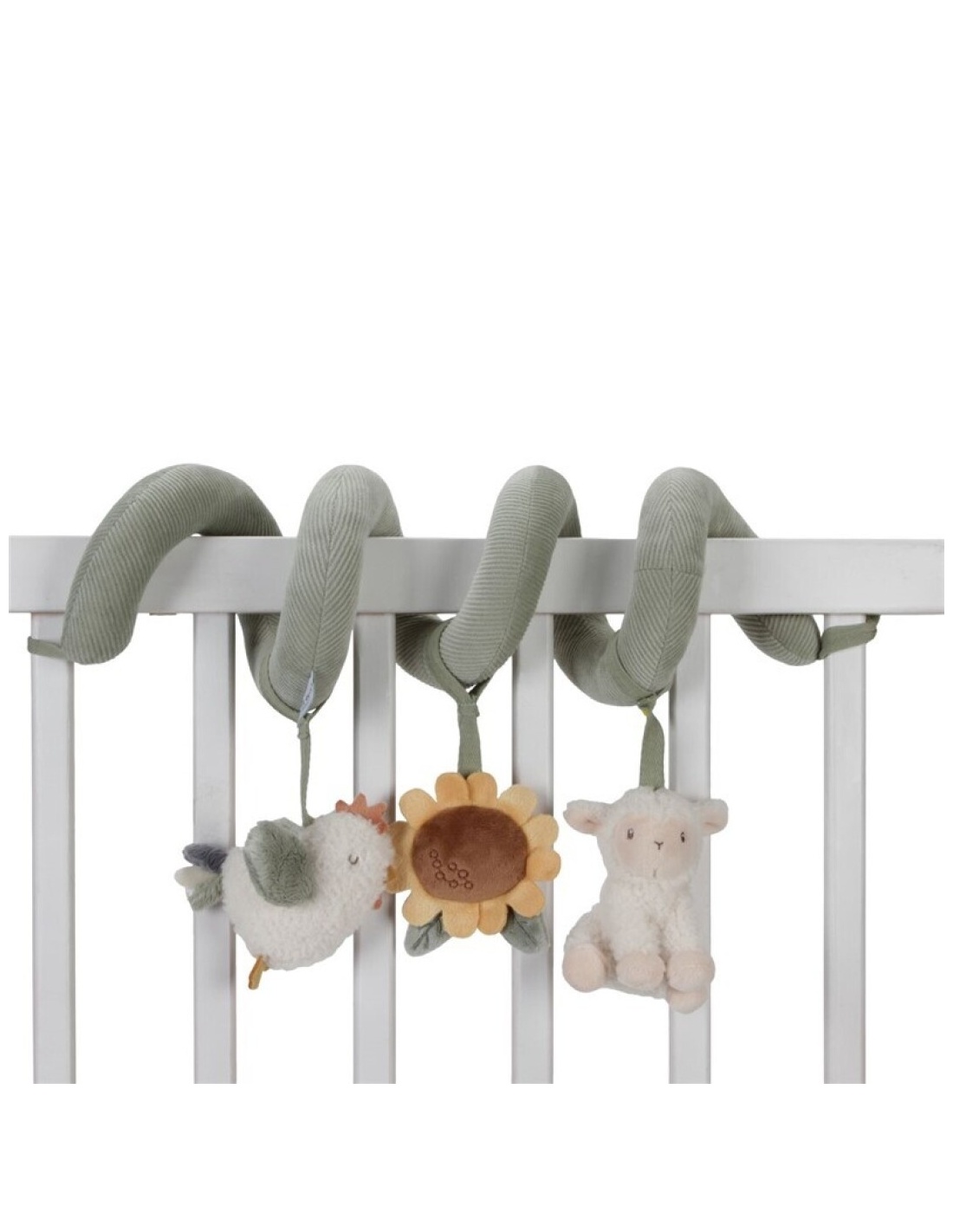 ¡Mira, siente y descubre! Esta divertida espiral de actividades mantendrá entretenidos a los bebés tanto en casa como mientras viajan. Conecta fácilmente este práctico juguete a cualquier cosa, desde una cuna hasta un parque o una silla para el coche. Esta espiral fortalece los sentidos y estimula la coordinación mano-ojo. La espiral de actividades está confeccionada en pana con algodón y presenta una pequeña oveja, una alegre gallina y un hermoso girasol.