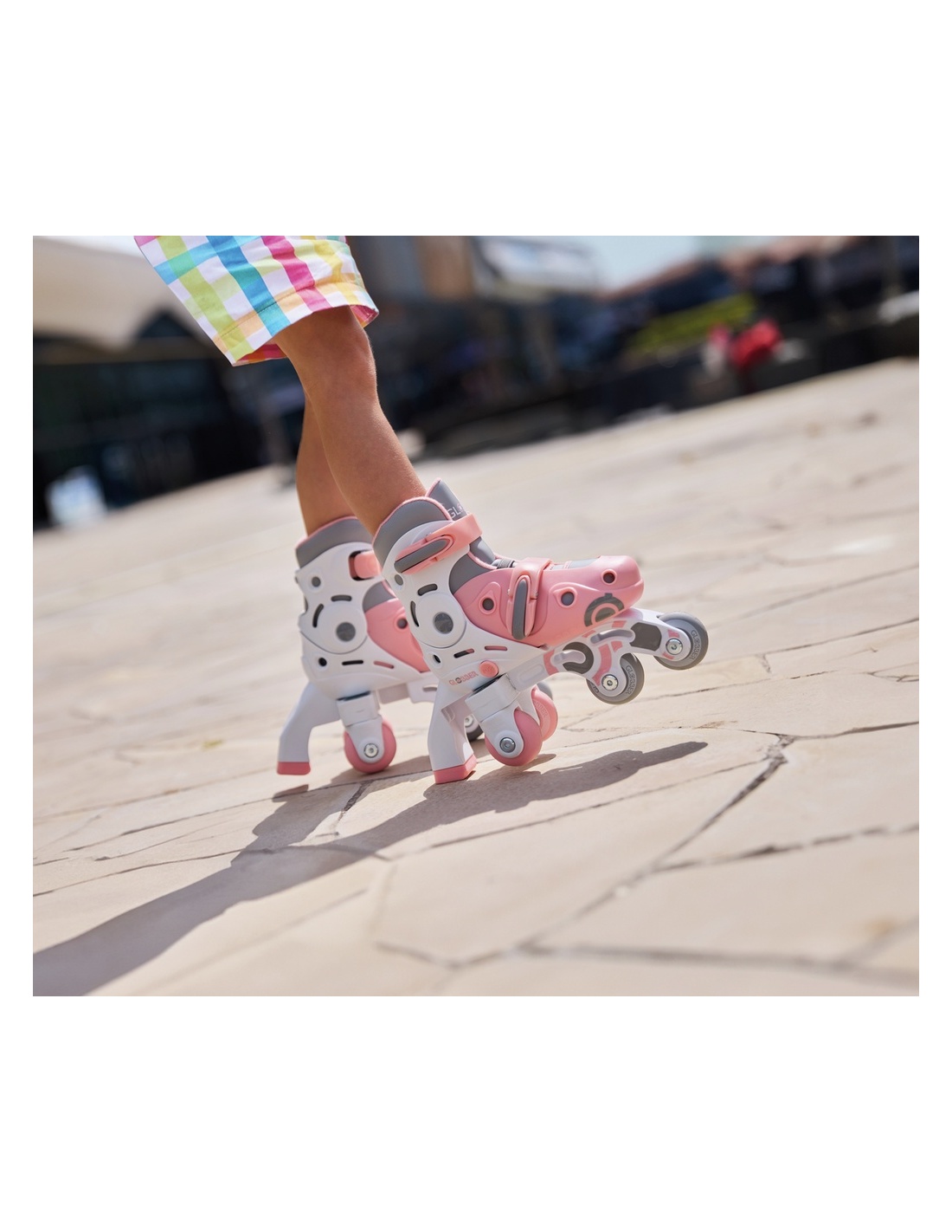 Estos patines son perfectos para ayudarles a aprender a patinar a su ritmo, ya que se adaptan a su progreso. Comenzarán a usarlos con el modo de aprendizaje, en el que las 2 ruedas traseras están paralelas para una mayor estabilidad. A medida que progresen, se convierten fácilmente en unos patines en línea. Están equipados con un módulo de rueda trasera giratoria para una fácil transformación, correas y botones simples pero duraderos para un fácil ajuste sin herramientas, botas cómodas y ruedas de alta calidad.