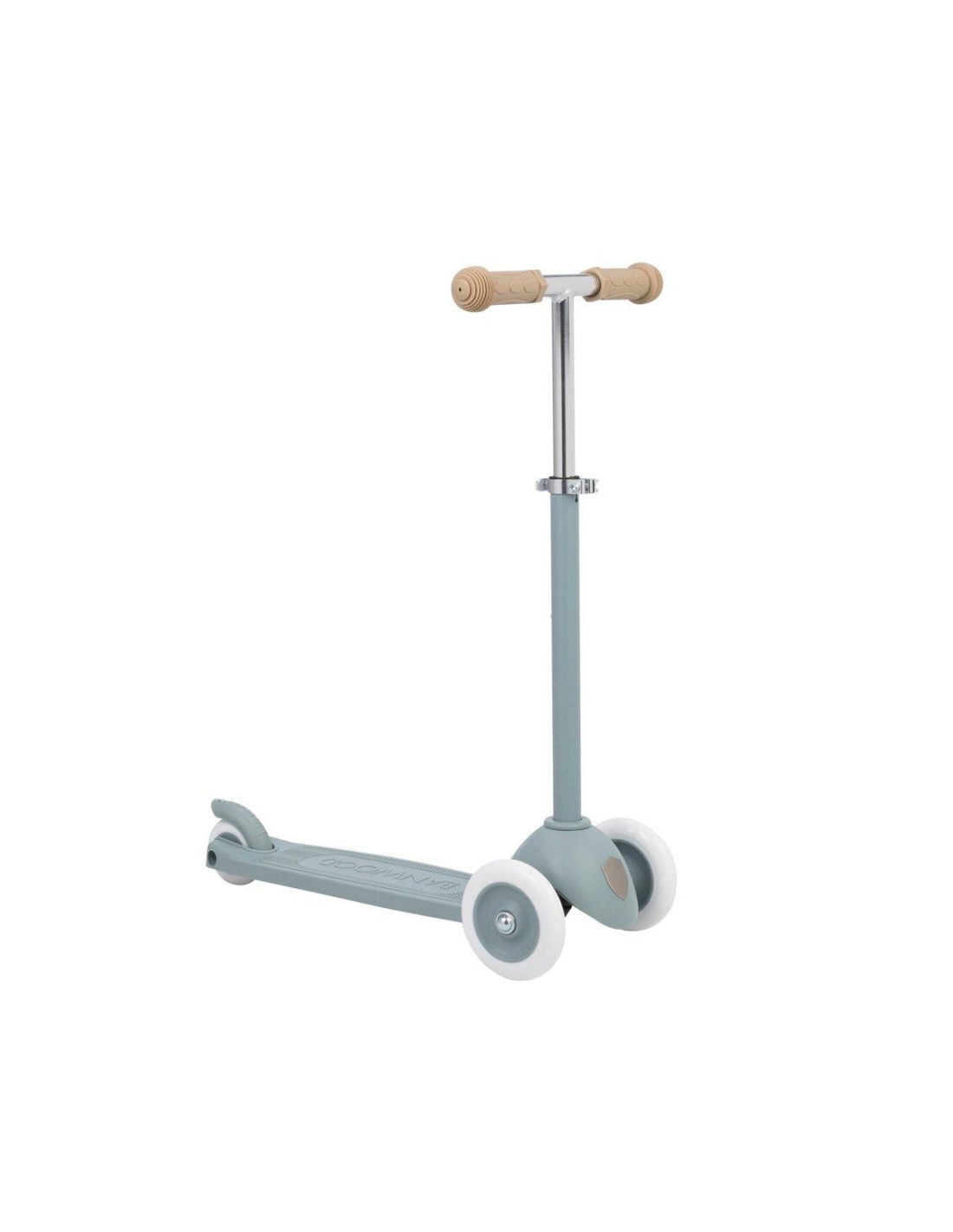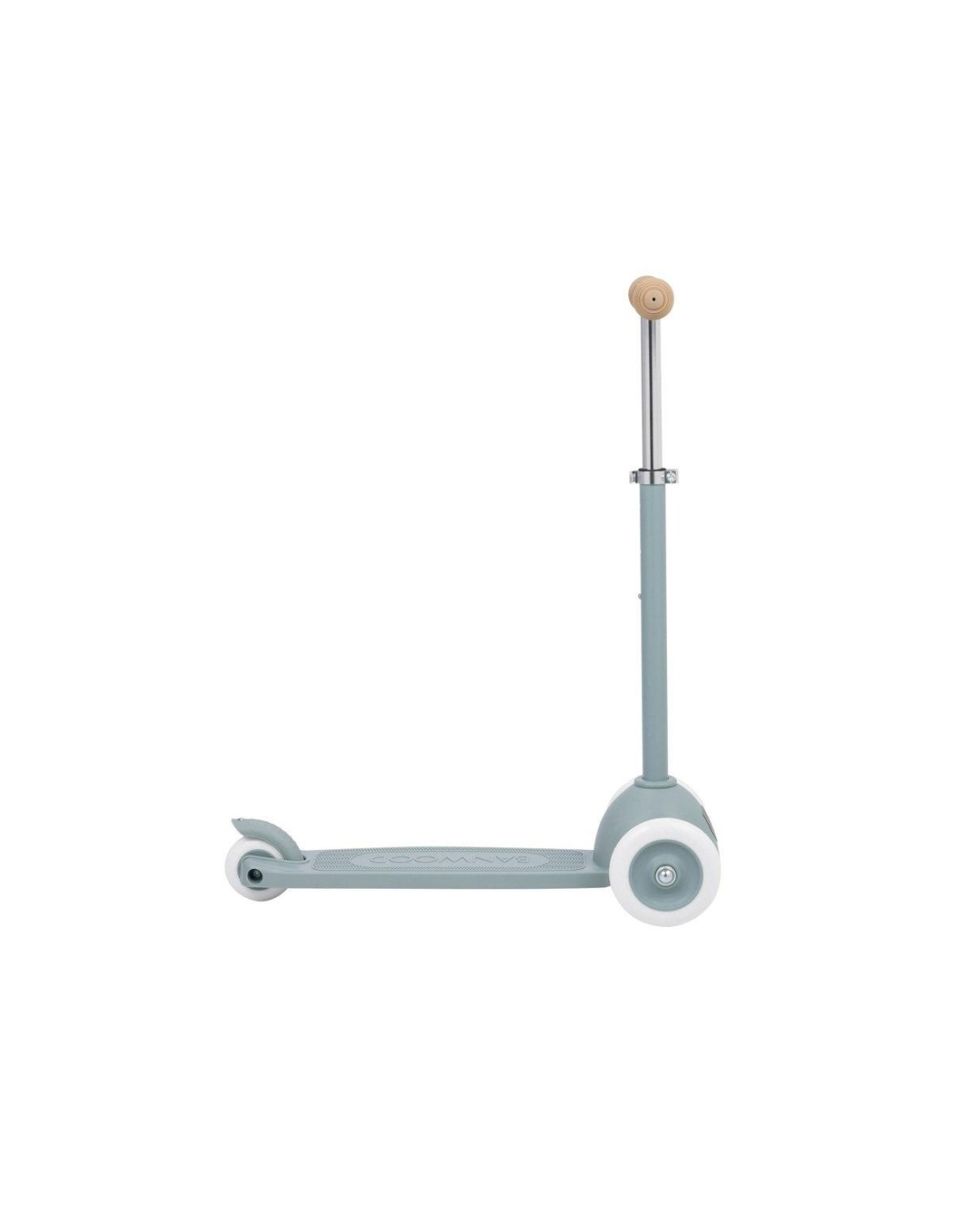 El patinete Banwood está fabricado con plástico y fibras recicladas, destacando el compromiso con la sostenibilidad. Cuenta con el sistema de manejo "Easy Ride Steering System" patentado, diseño de tres ruedas (2 delanteras y 1 trasera con freno), y un manillar ajustable en tres alturas (70, 75 y 80 cm) para adaptarse al crecimiento del niño. La base antideslizante mide 29.3 cm de largo y 10 cm de ancho, ofreciendo estabilidad. Sus empuñaduras son de goma antideslizante. Con un peso de 2.542 kg, soporta hasta 50 kg y está recomendado a partir de los 3 años. Requiere ensamblaje por un adulto. Certificado con marcado CE según legislación de la UE.