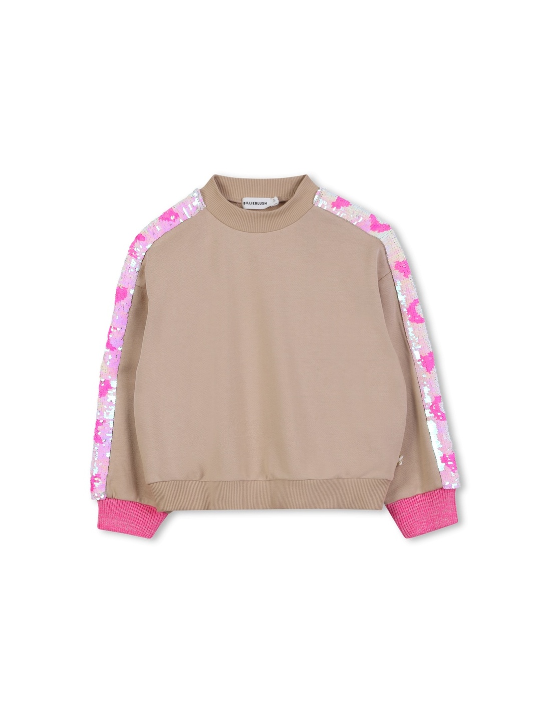 Esta sudadera de vellón BILLIEBLUSH es cómoda y moderna. El puño acanalado en el cuello y la parte inferior garantiza un ajuste perfecto, mientras que los puños en contraste con un hilo brillante añaden un sutil toque de luz. Las rayas adornadas con lentejuelas en las mangas, acompañadas de gráficos divertidos, añaden una dimensión brillante y festiva. Una sudadera perfecta para un look casual y elegante, a la vez que llena de carácter.