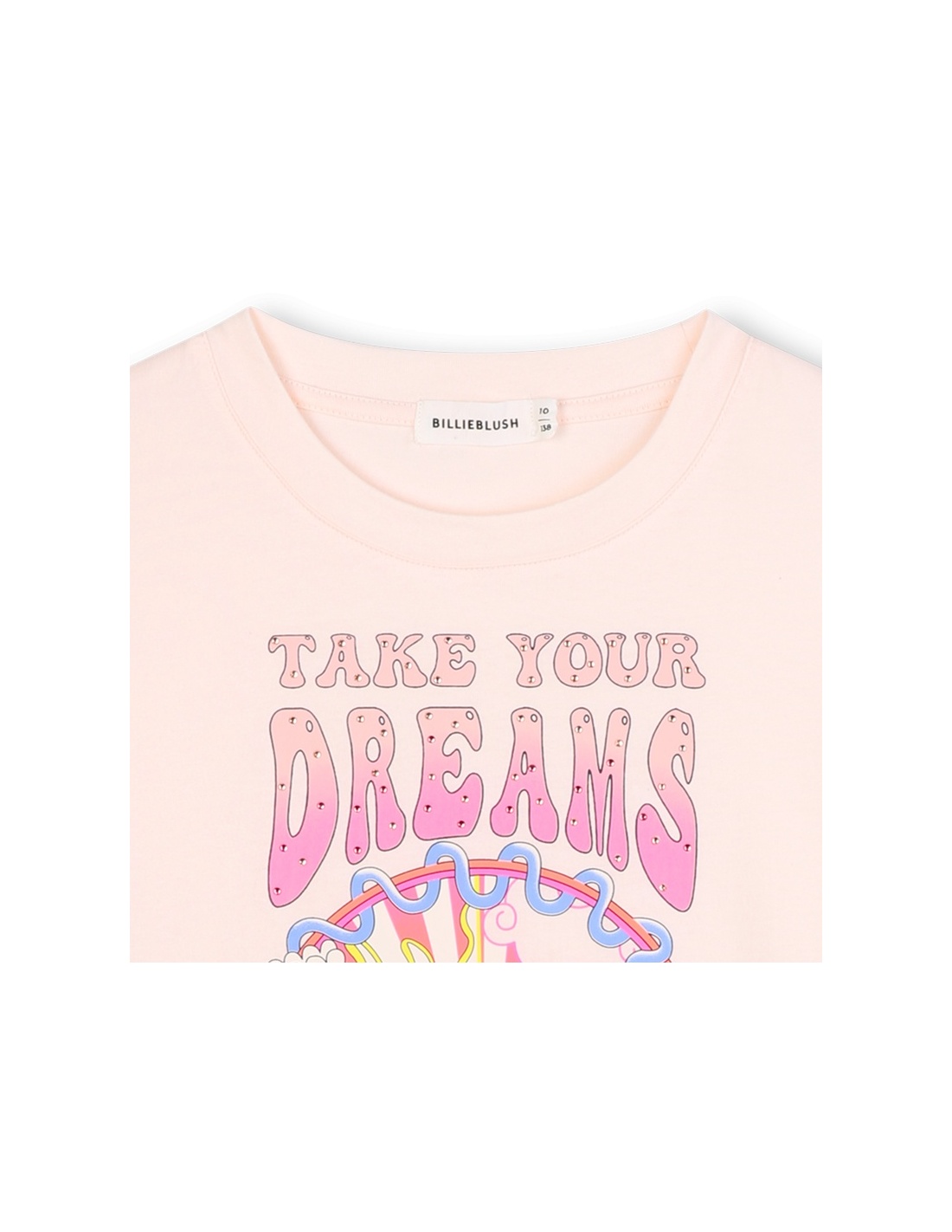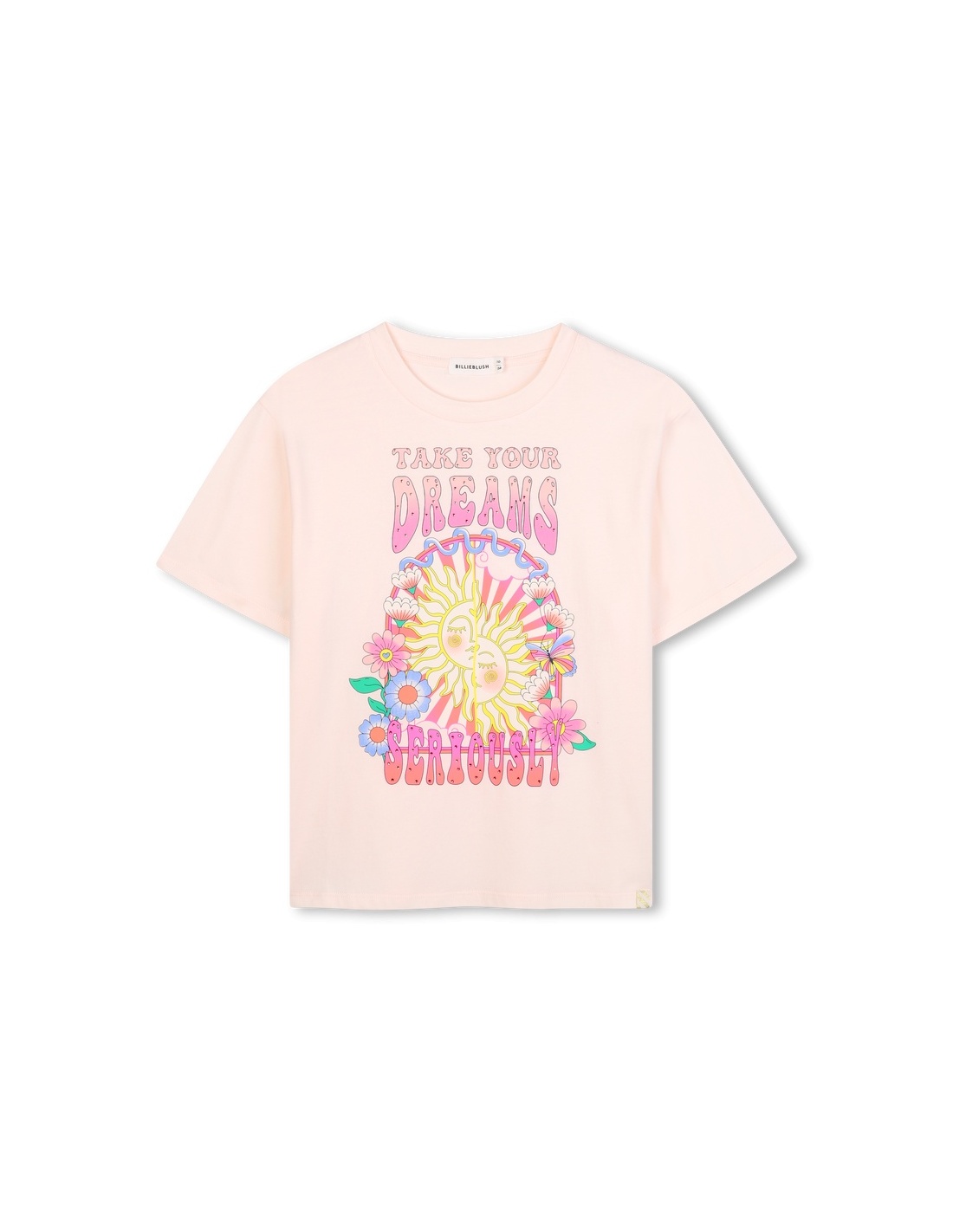 Esta camiseta de punto BILLIEBLUSH, de manga corta y cuello redondo, es perfecta para un look casual y trendy. Su forma ancha garantiza la comodidad y la libertad de movimiento, mientras que la elegante ilustración con tachuelas en la parte delantera añade un toque de modernidad y carácter a este modelo.
