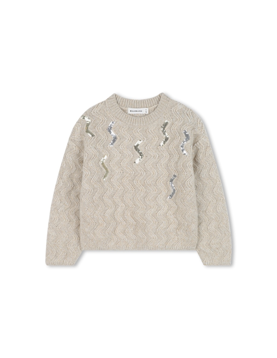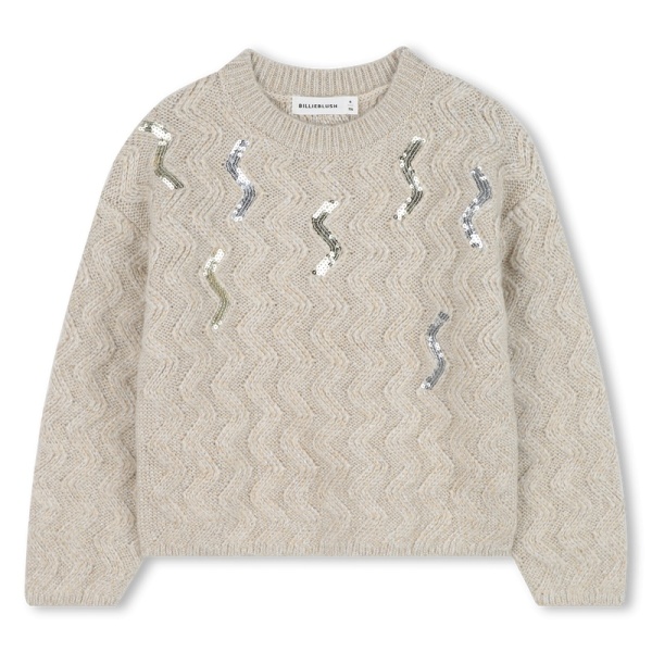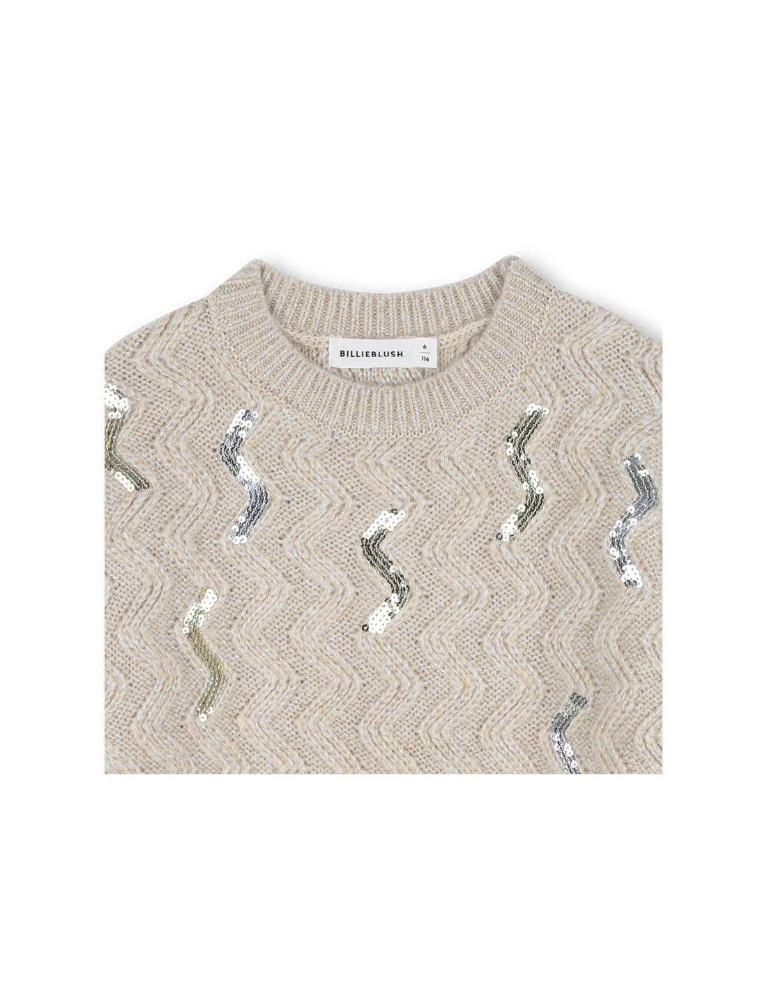 Este jersey de punto BILLIEBLUSH es la combinación perfecta de elegancia y brillo. Los hilos de oro brillante aportan un brillo sutil al material, mientras que la ilustración adornada con lentejuelas añade un toque de luminosidad. El cuello alto ofrece calidez y comodidad, lo que hace que este suéter sea la opción perfecta para un look elegante y brillante.