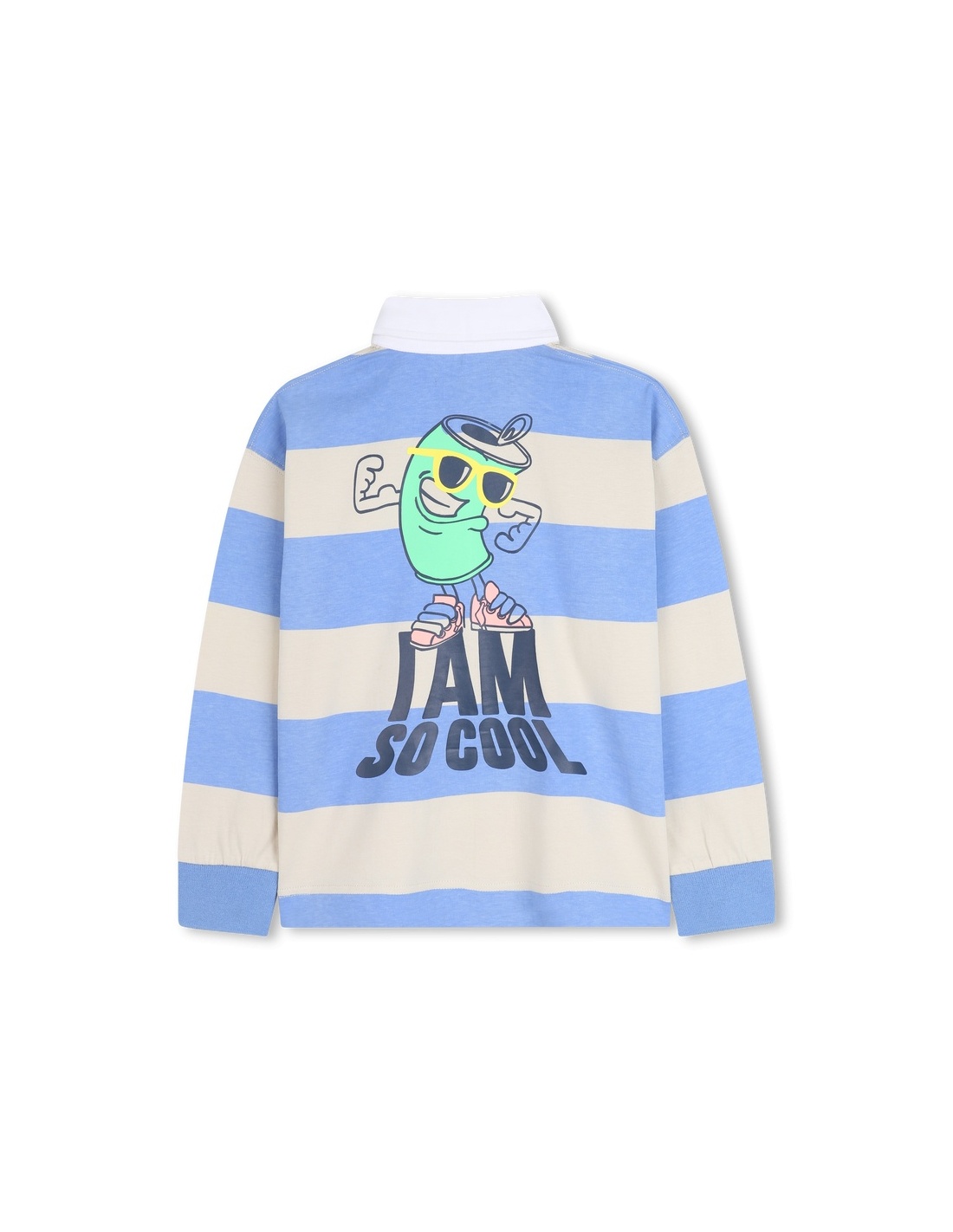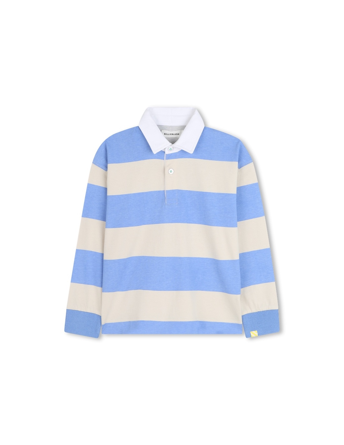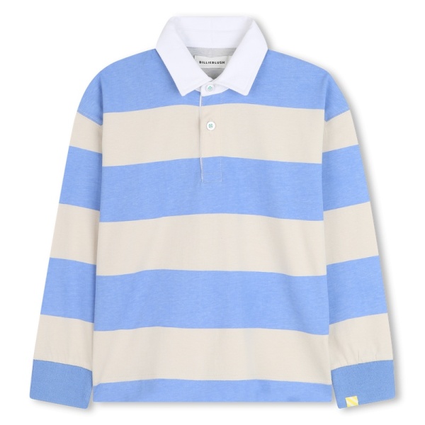 Este polo de punto de rayas BILLIEBLUSH de manga larga y cuello liso es el aliado perfecto para un look elegante y casual. La parte delantera abotonada y los puños acanalados garantizan un ajuste limpio, mientras que la elegante ilustración en la espalda añade un toque divertido y original a esta prenda clásica.