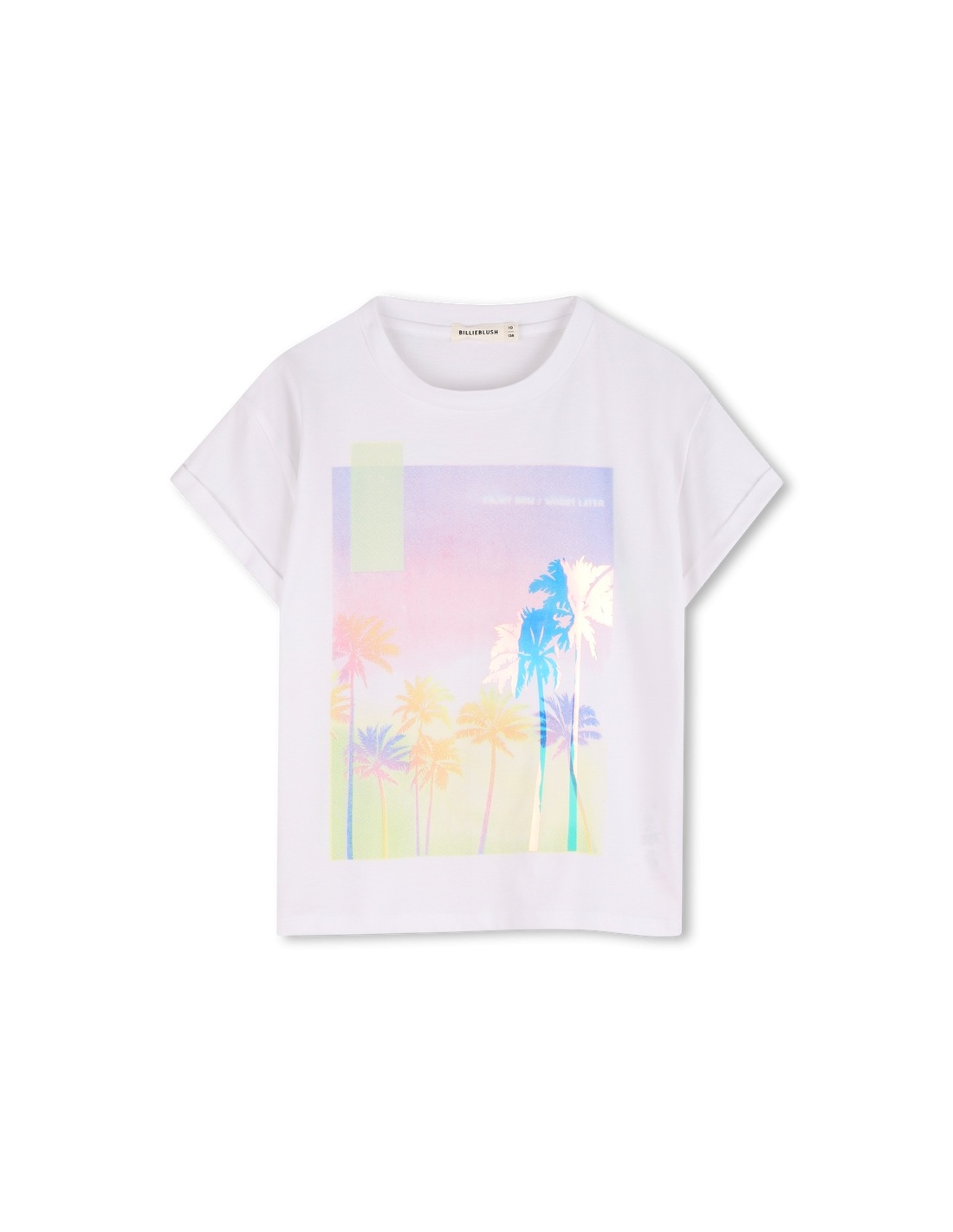 Esta camiseta de BILLIEBLUSH destaca por su ilustración digital vibrante, llena de color y energía. Las mangas de corte amplio con puños aportan un aire casual y actual, creando una silueta moderna y desenfadada. Ligera y cómoda de llevar, es la prenda perfecta para dar un toque alegre y contemporáneo a los looks de todos los días.