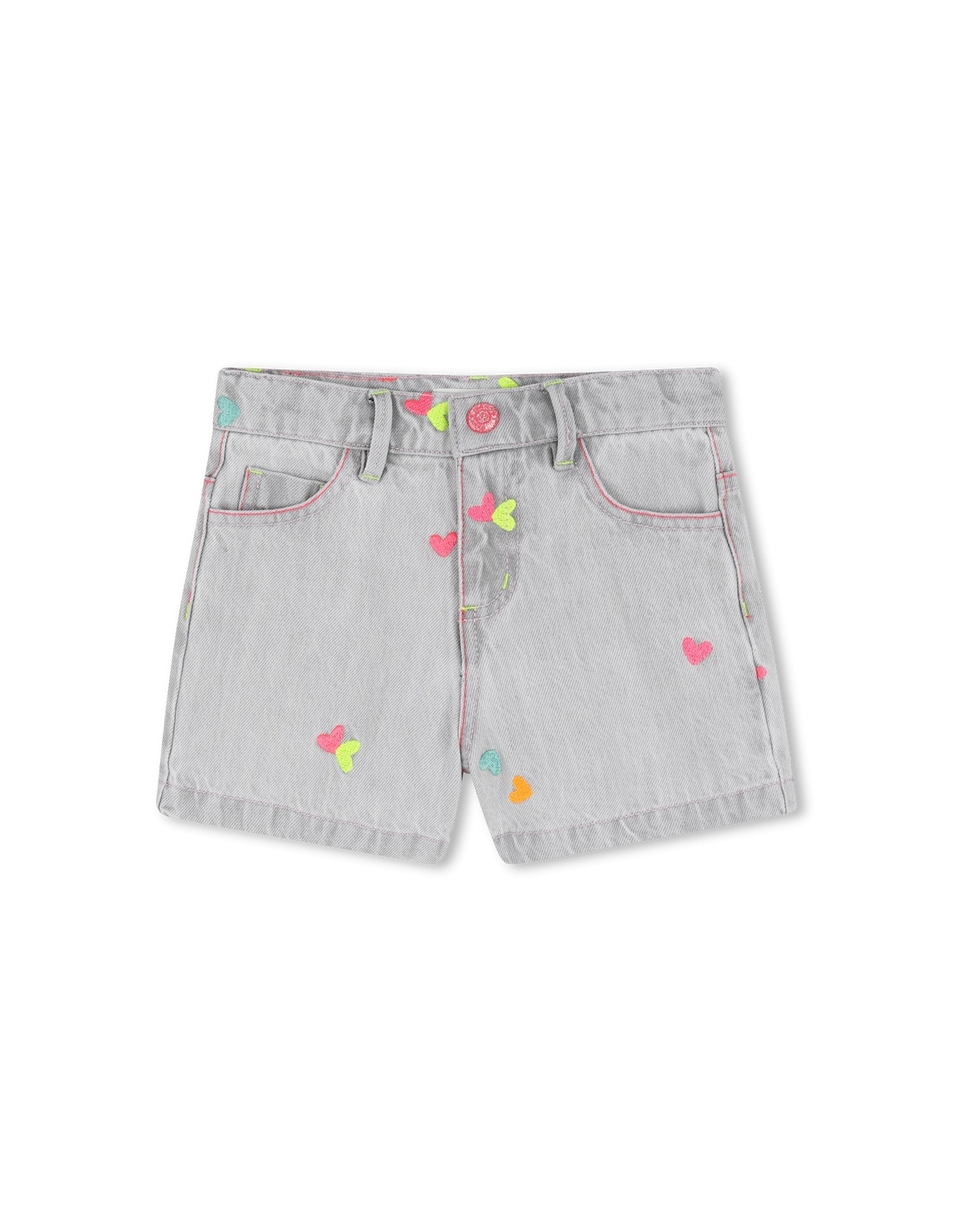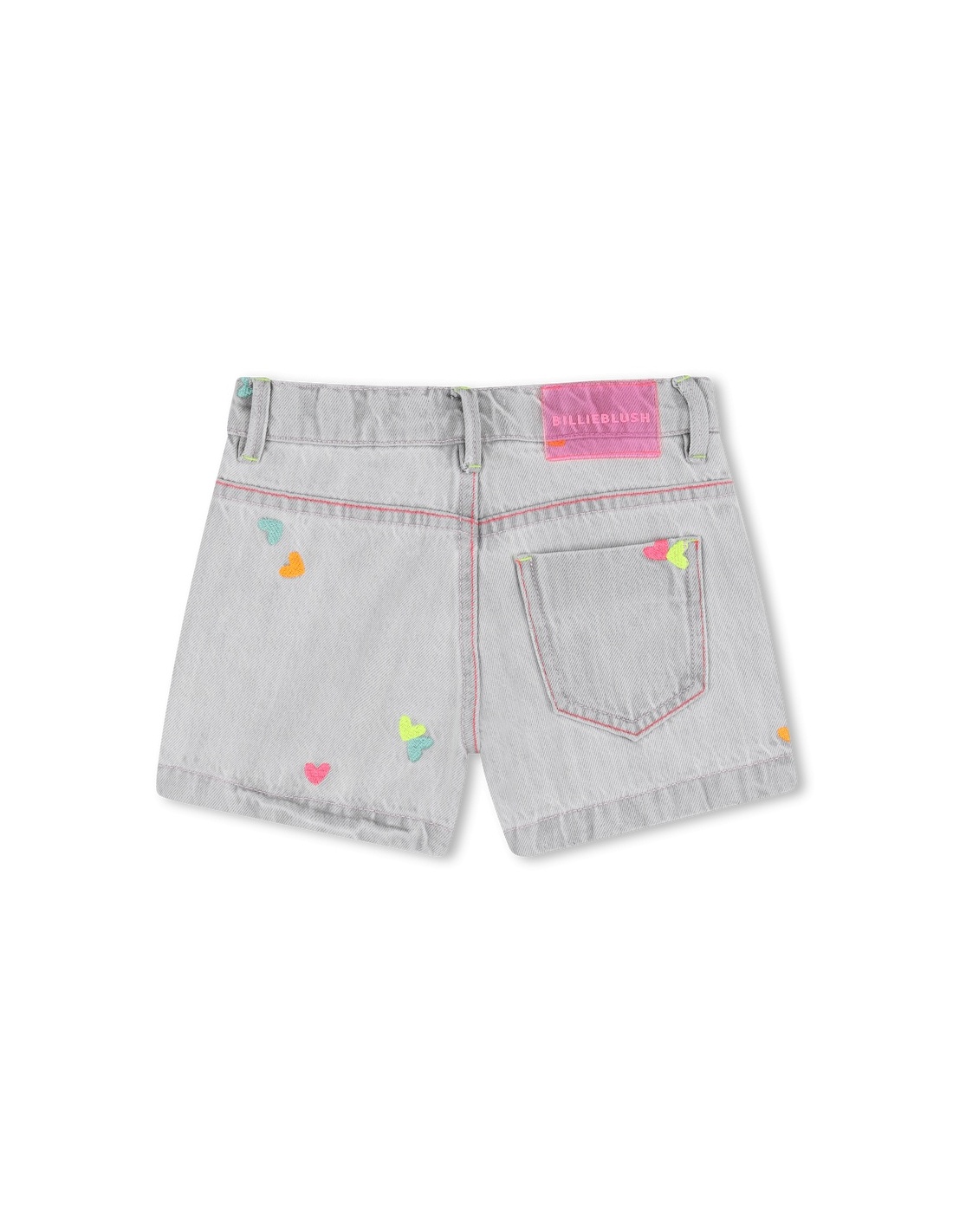 El espíritu vaquero se reinventa de forma suave y colorida con estos pantalones cortos BILLIEBLUSH. Los corazones bordados aportan un toque luminoso y encantador al tejido, mientras que su corte cómodo garantiza un confort perfecto durante todo el día. Detalles refinados como el cierre cuidado y la etiqueta con el logo en la cintura completan este diseño divertido y elegante, ideal para looks llenos de estilo y frescura.