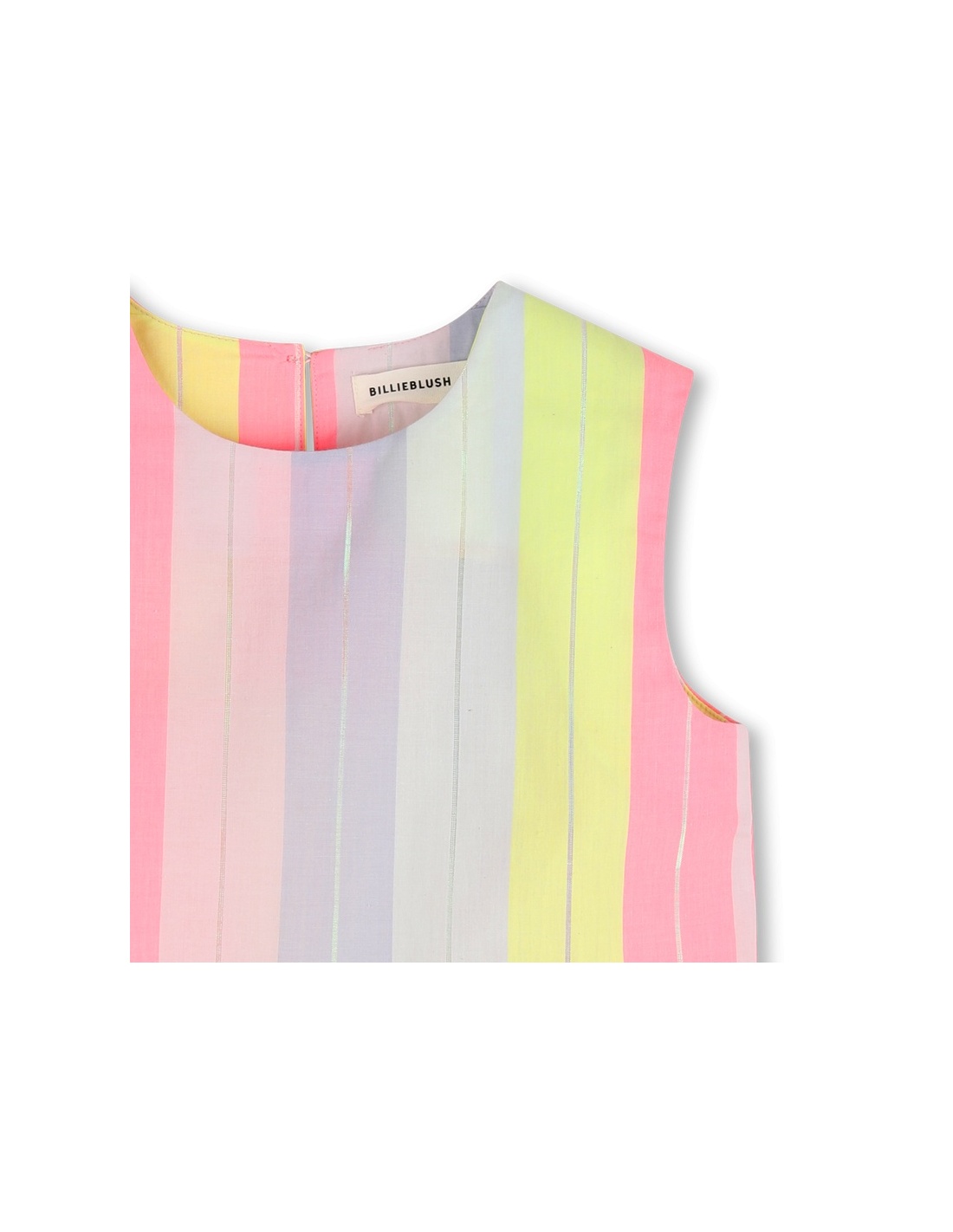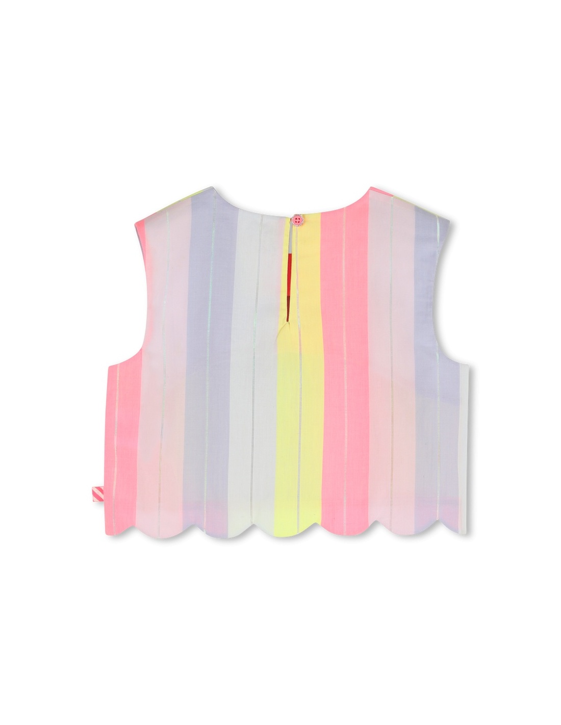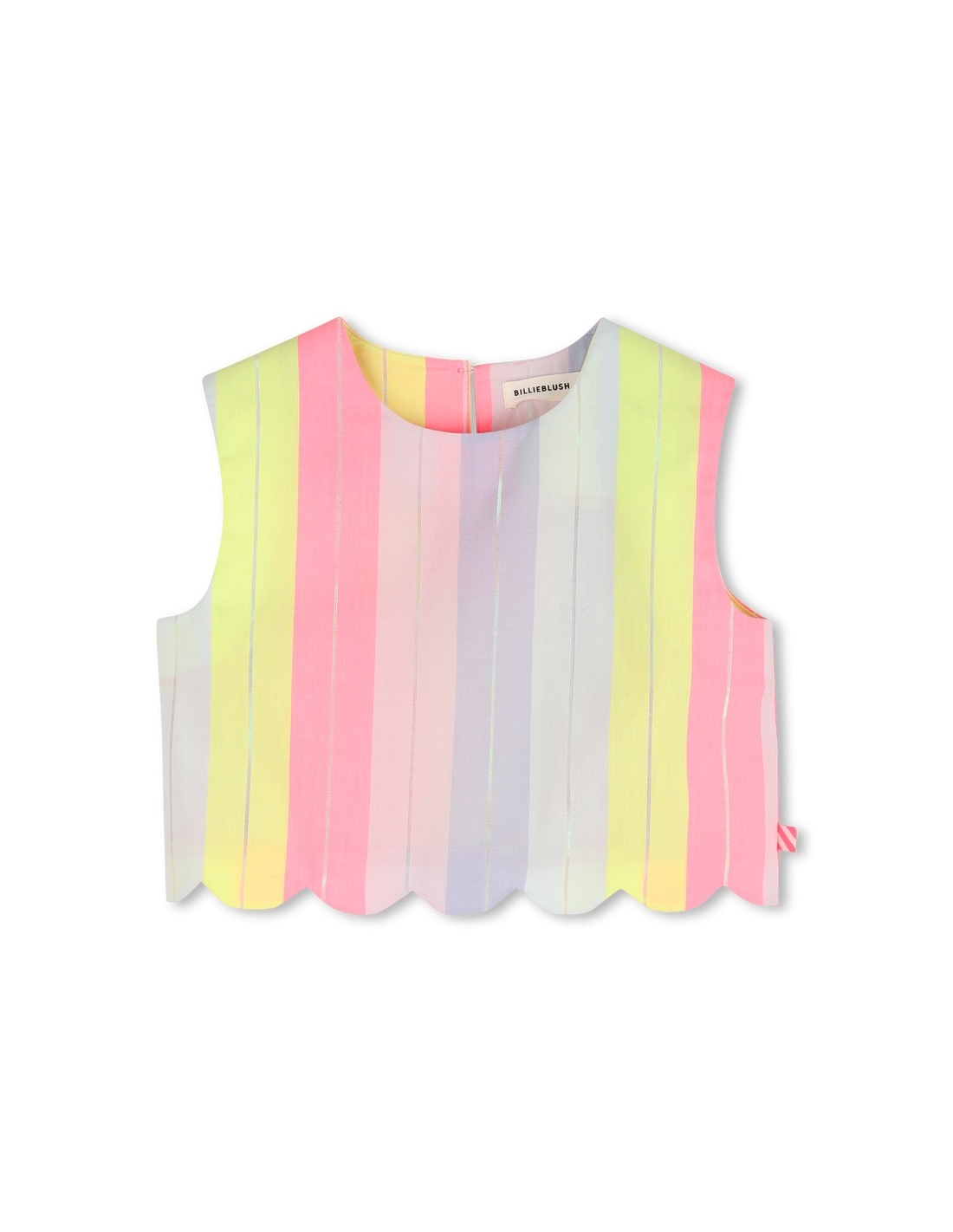 Una delicada camisa de algodón a rayas, realzada con un hilo brillante que capta la luz en cada movimiento. Su corte cuidado y el cierre de botones en la parte trasera ofrecen un acabado limpio y práctico, perfecto tanto para jugar como para salir. Diseñada por Billieblush, es una prenda fácil de combinar que une comodidad y carácter, convirtiéndose en una de esas favoritas que se llevan con alegría.