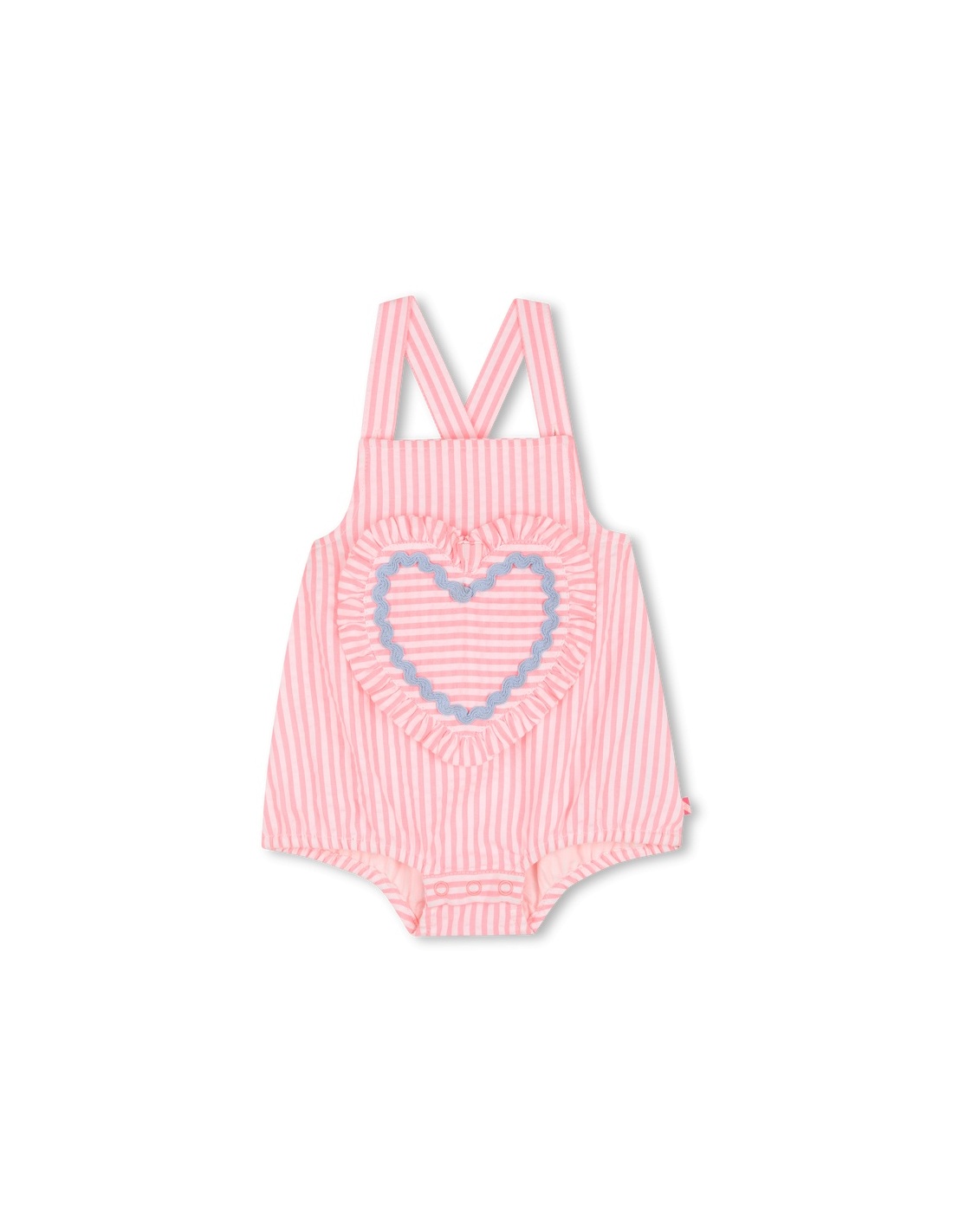 Rayado con ternura, este mono de Billieblush seduce con su corazón bordado y su delicado volante. El forro ligero y las correas ajustables garantizan comodidad óptima, mientras que el elegante acabado en bies añade un toque colorido. Su suavidad y alegría lo convierten en la prenda perfecta para disfrutar de los días soleados.