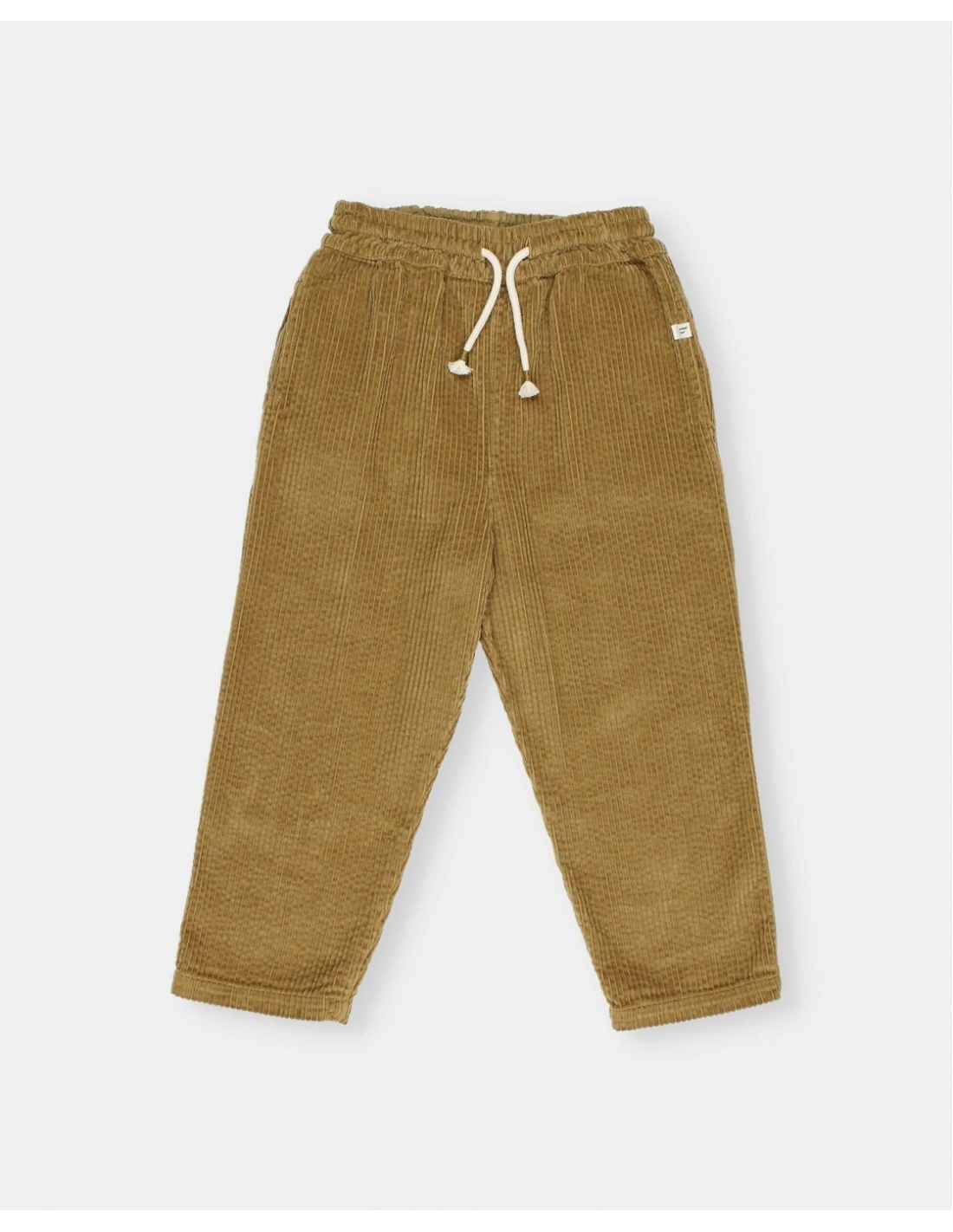 Pantalón de pana. Cintura elástica con cordón para ajustar. Bolsillos delanteros con etiqueta tab. Bolsillo plastrón en la espalda.