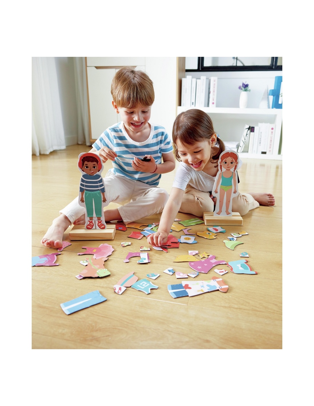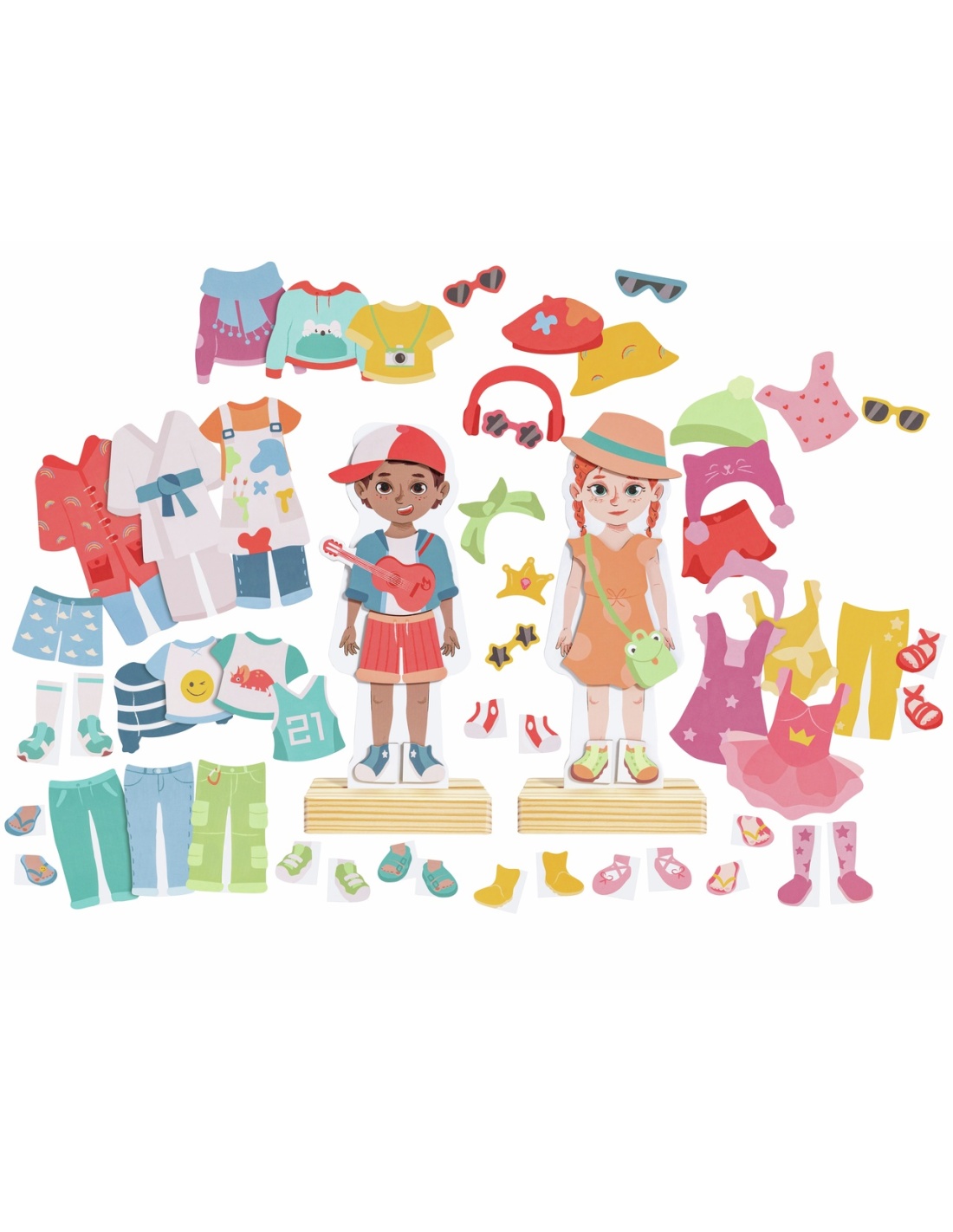 Dé rienda suelta a la creatividad de su hijo con nuestro juego magnético para vestir. Mezcla y combina piezas de ropa para crear un sinfín de elegantes conjuntos para los modelos niño y niña