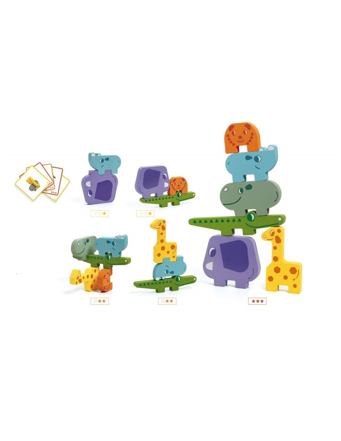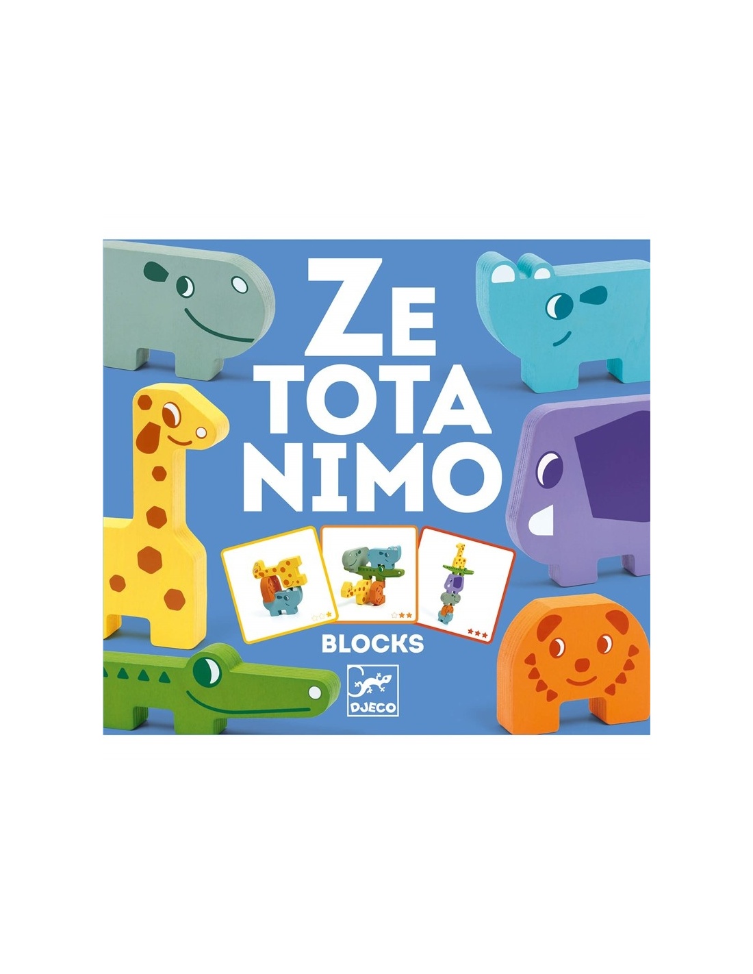 Ze Totanimo es un juego de madera de equilibrio y orientación en el espacio. Seis animales de madera con los que hay que reproducir los tótems indicados en las tarjetas modelo. Varios niveles para jugar progresivamente a partir de los 3 años.