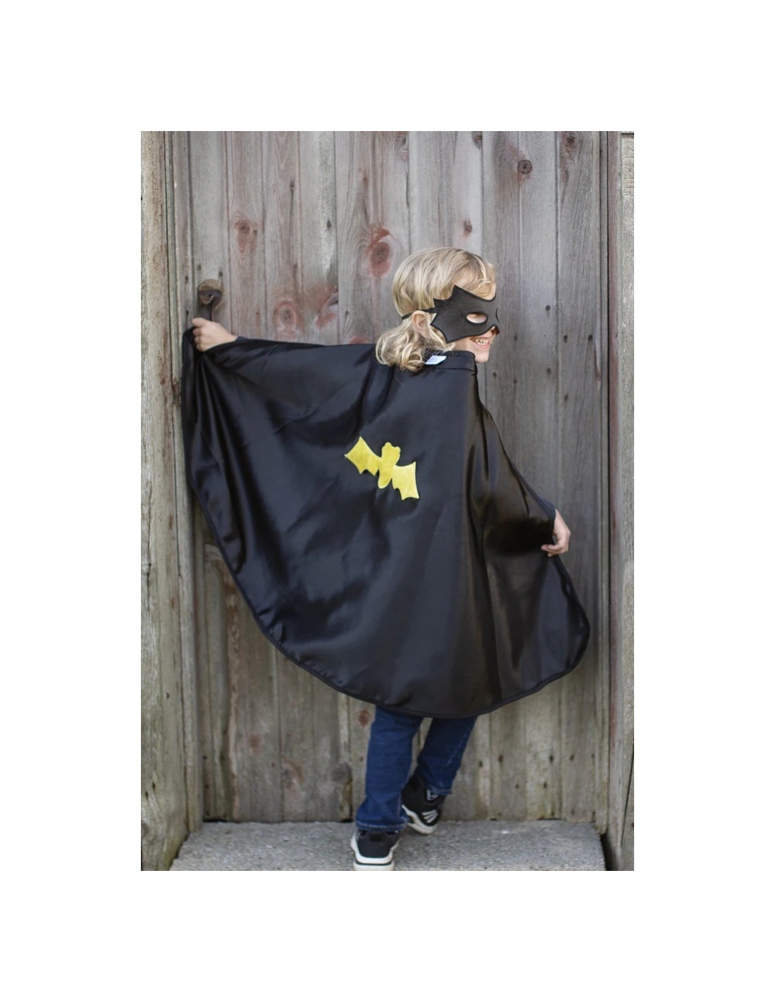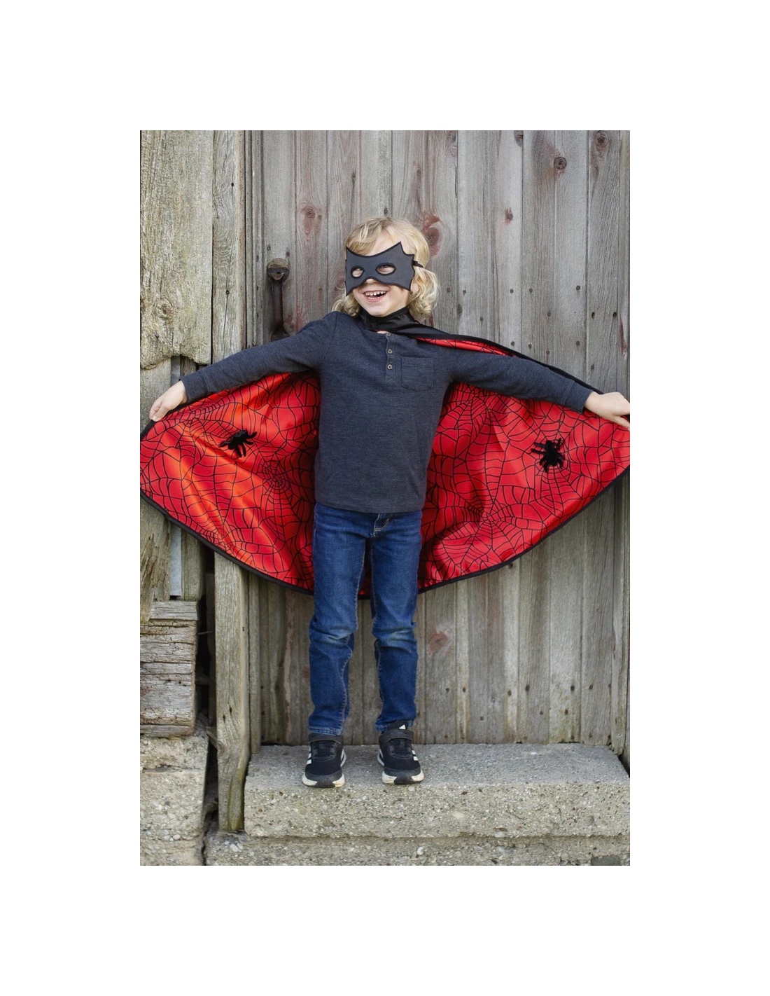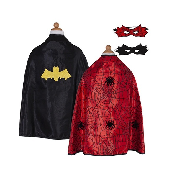 Esta capa versátil tiene un diseño que puede representar tanto una araña como un murciélago, con detalles que imitan las patas de araña o las alas de murciélago. Es ideal para disfraces de Halloween o juegos de fantasía. La capa es fácil de usar y perfecta para que los pequeños se transformen en su superhéroe favorito.