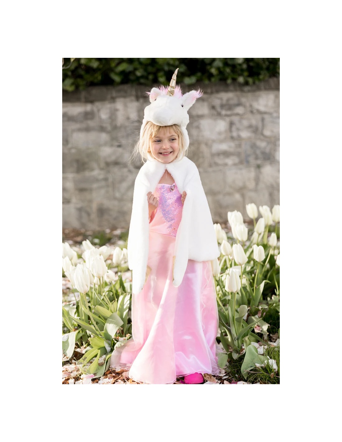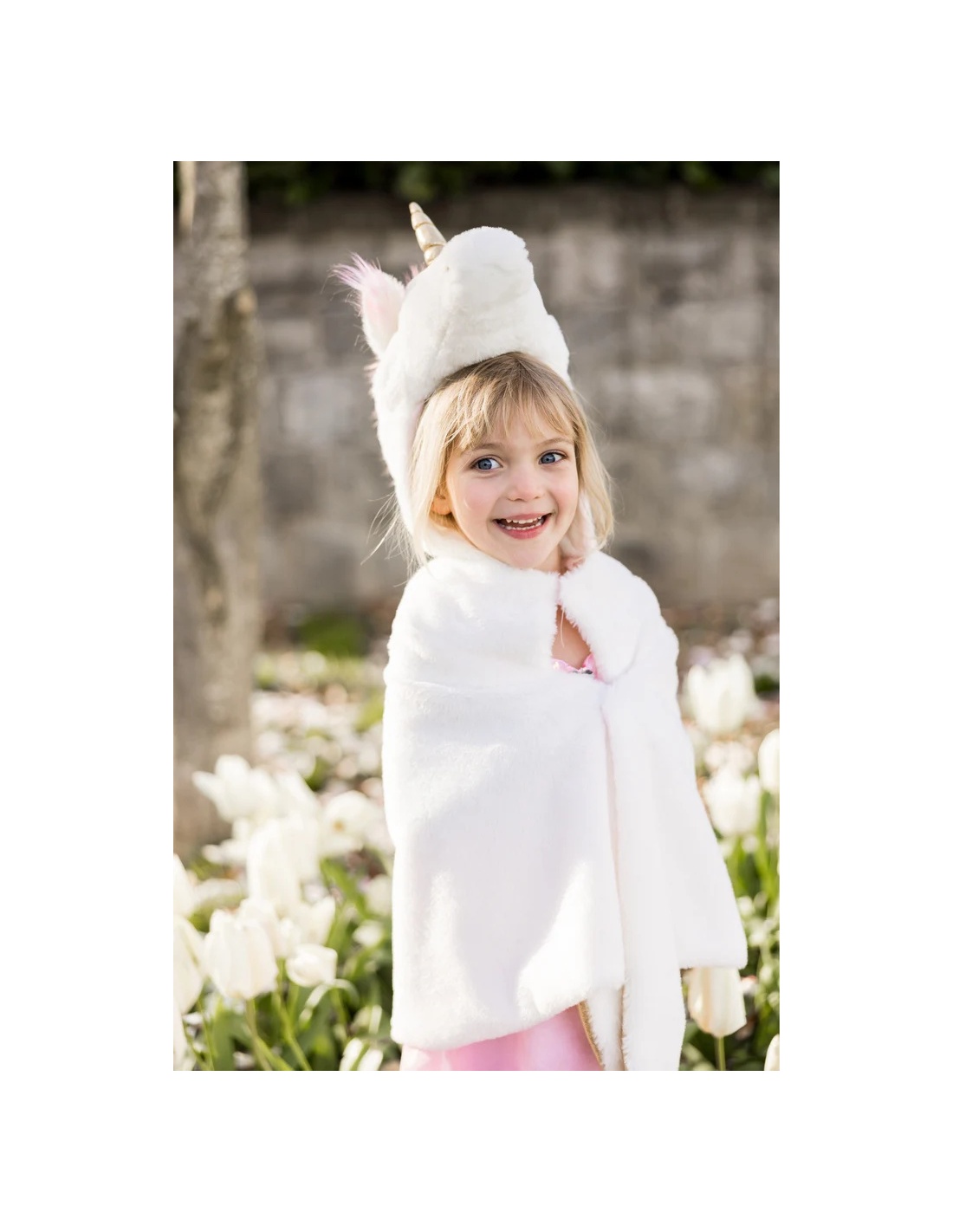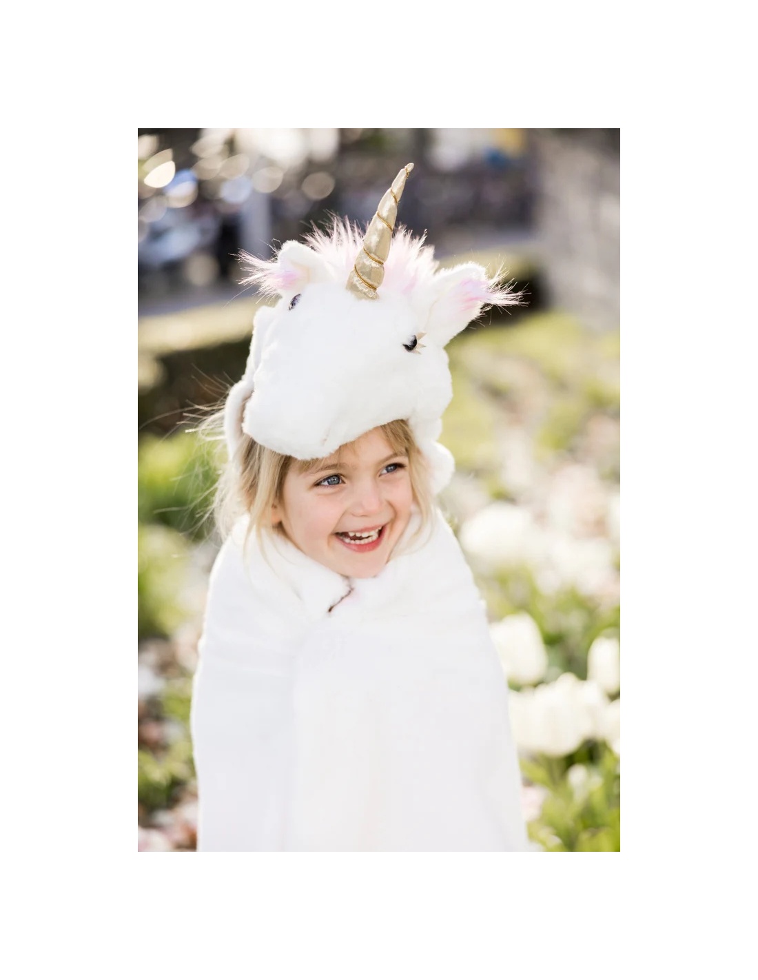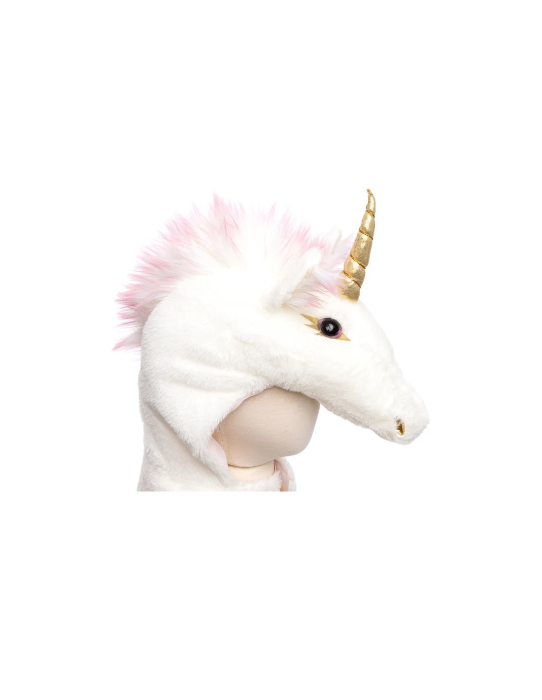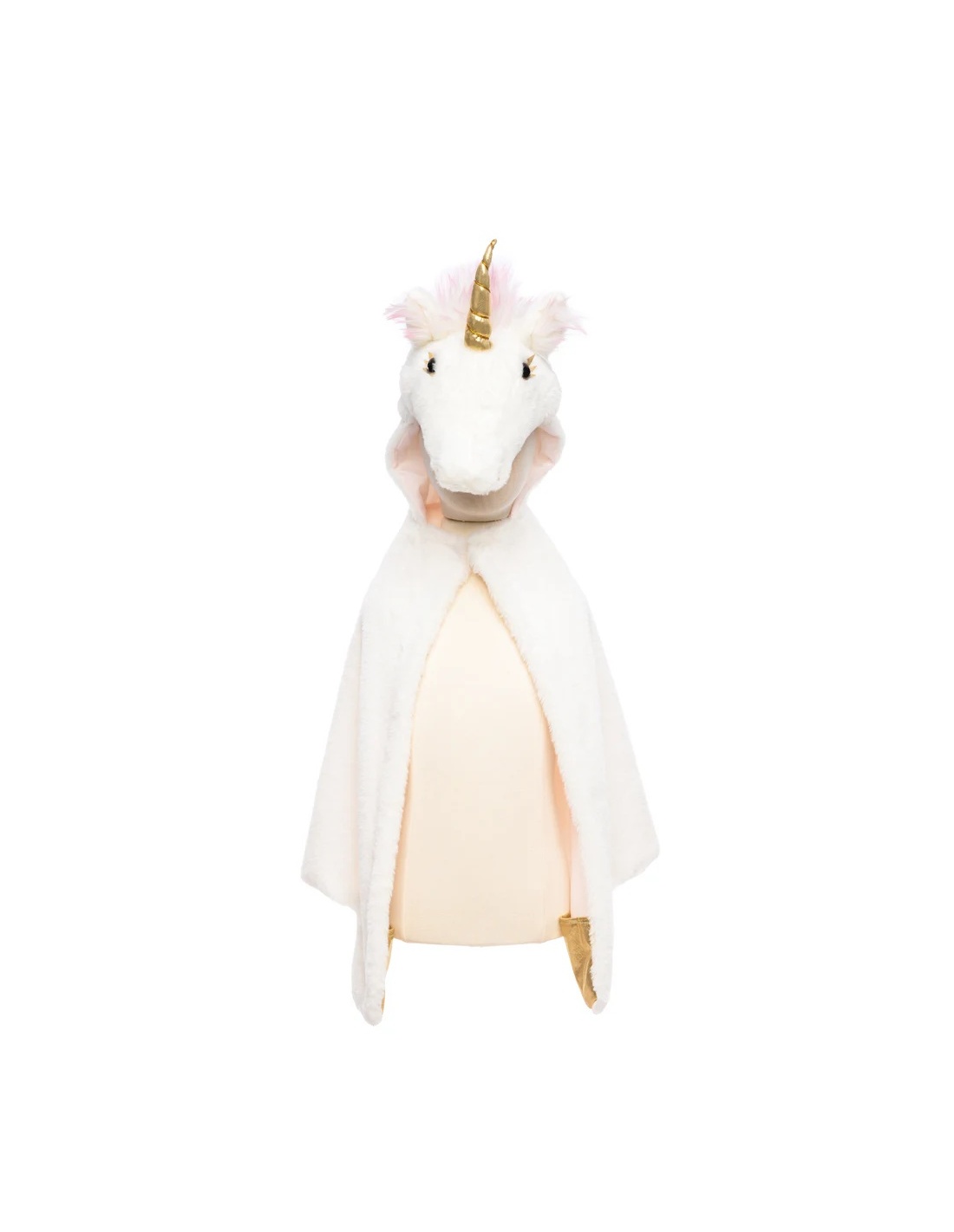 Una encantadora capa de abrazo de unicornio, ¡un accesorio mágico que añadirá un toque de magia y diversión a las tardes de juego! Confeccionada con mucho detalle, cuenta con un exterior suave y esponjoso, con una hermosa melena rosa de unicornio y un cuerno dorado. El pelaje sintético de felpa ofrece una sensación acogedora y reconfortante. Una de las características más encantadoras de esta capa es la inclusión de bolsillos funcionales.