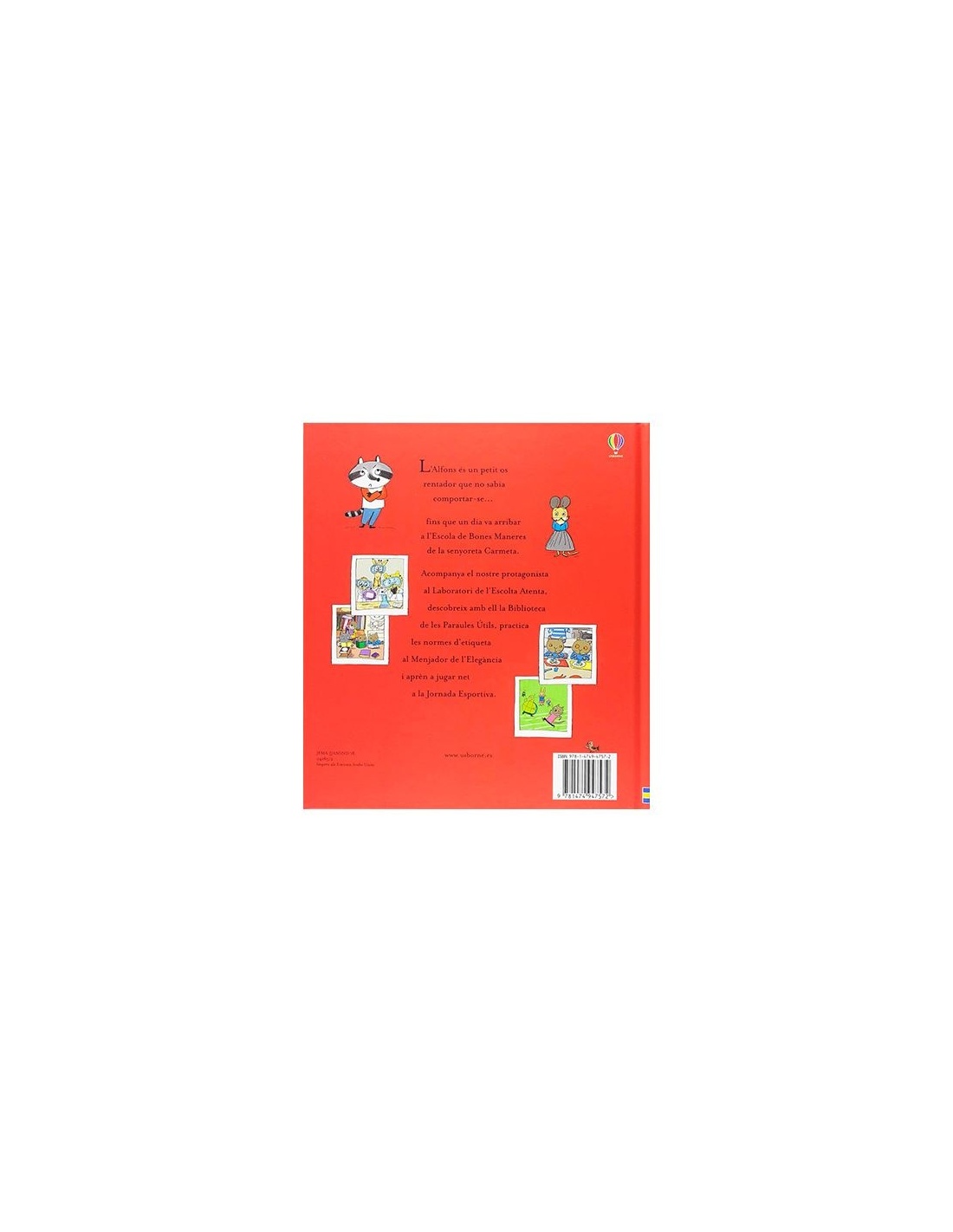 Este libro simpático y divertido trata conceptos como las buenas y malas maneras y la consideración hacia los demás. Acompaña a Alfons, el mapache, a la Escuela de Buenas Maneras de la Señorita Carmeta. Podrás ir a clase al Laboratorio de la Escucha Atenta y al Estudio de la Compañonía, aprender buenos modales en la mesa en el Comedor de la Elegancia, visitar la Enfermería de las Disculpas y demostrar tu espíritu deportivo en la Jornada Deportiva.