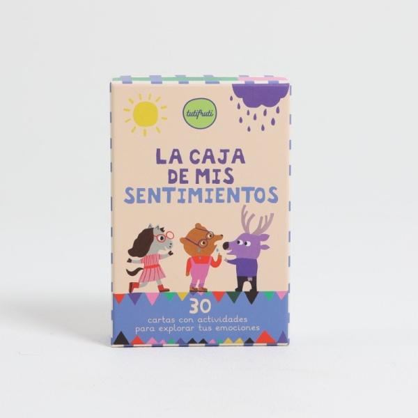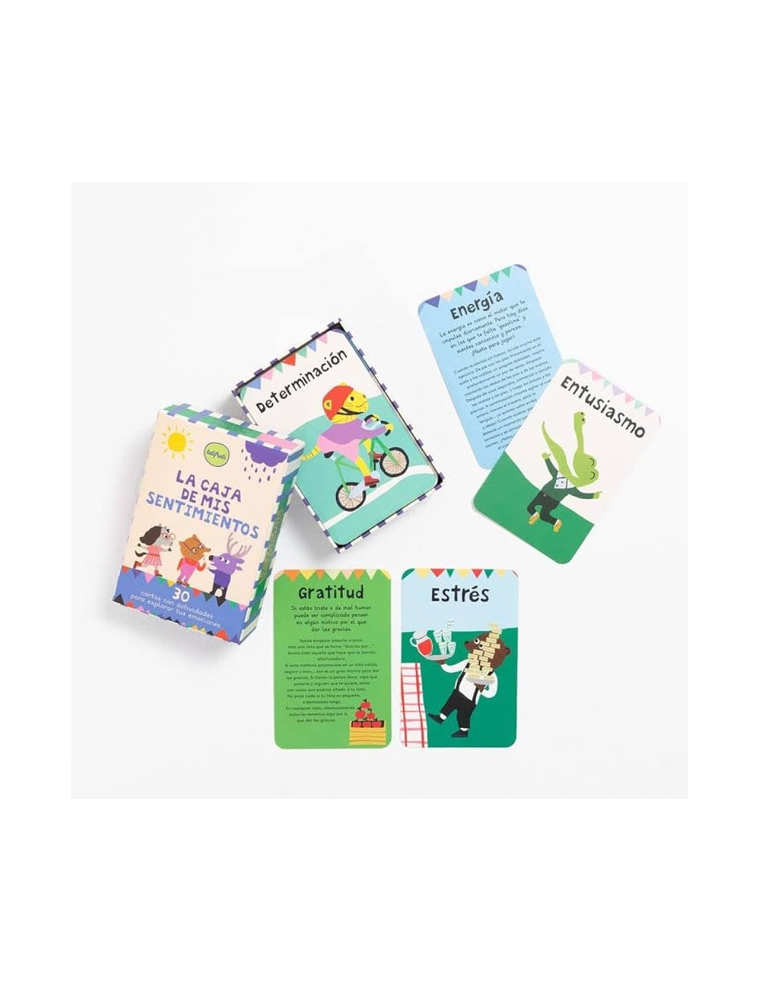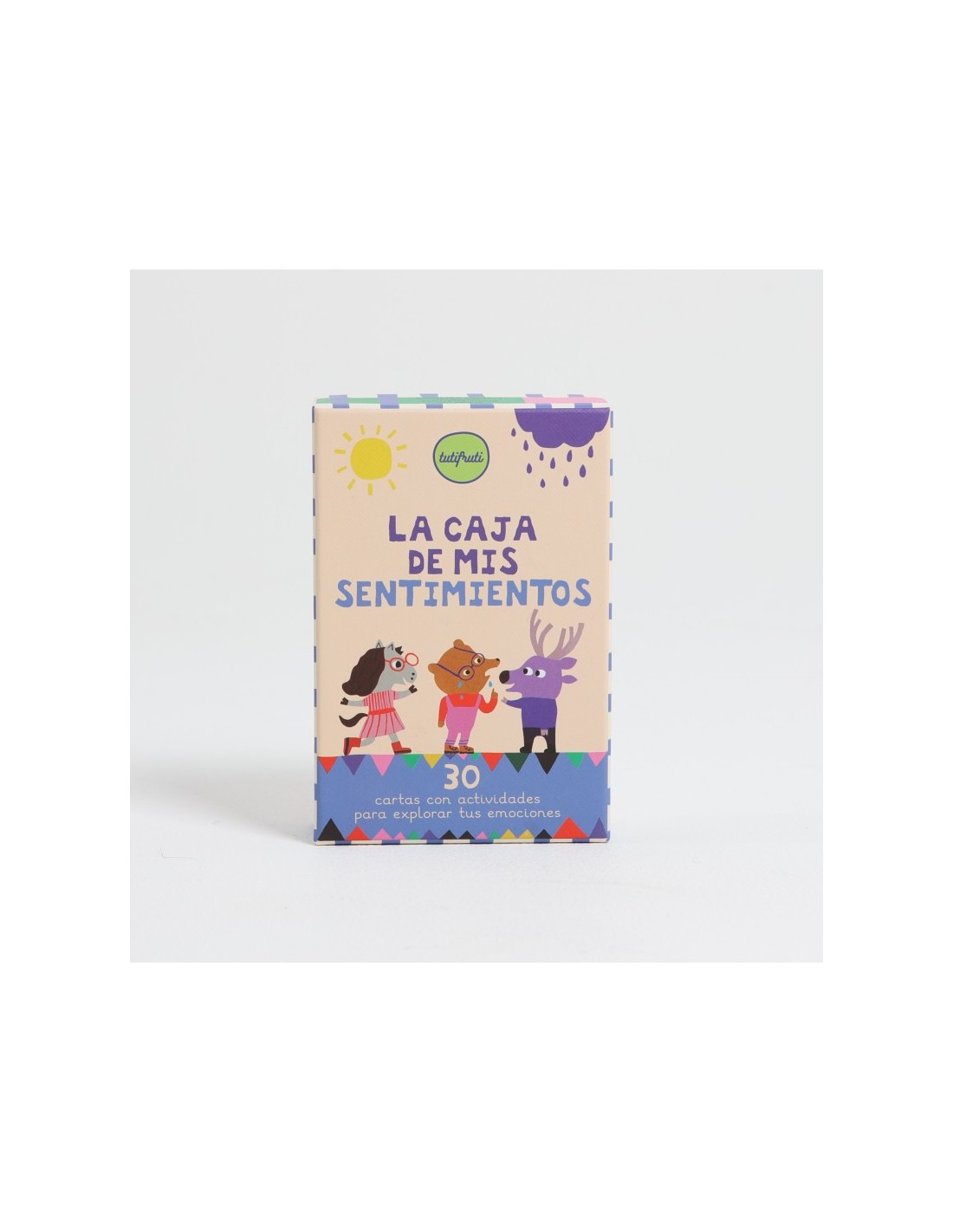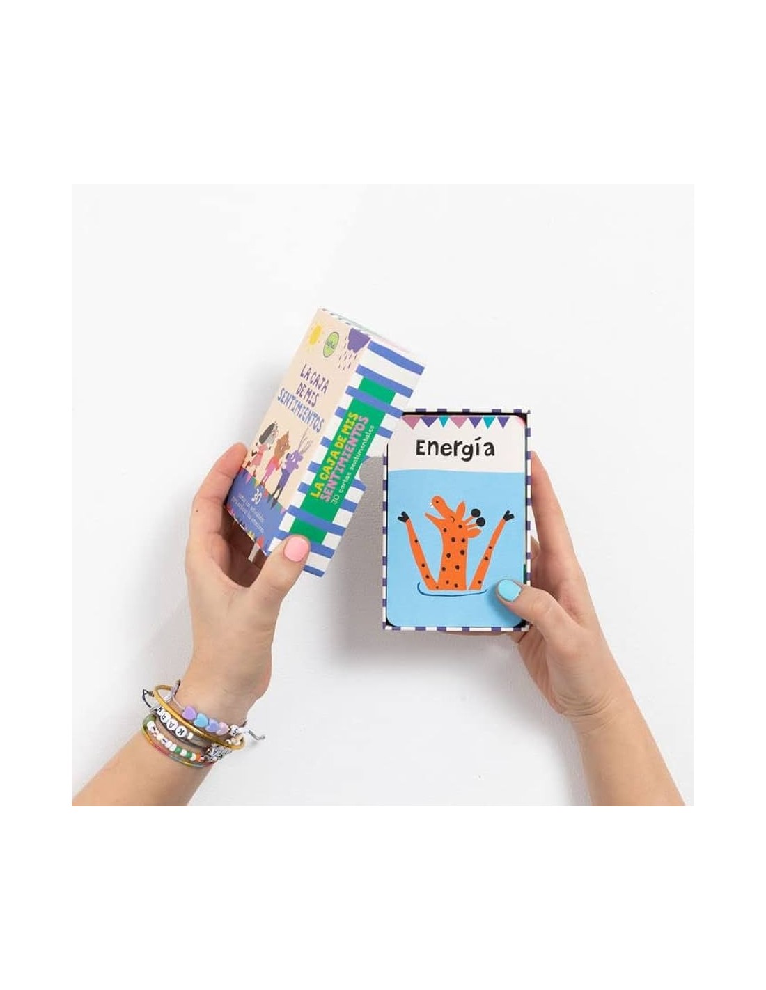 Esta caja contiene 30 cartas con prácticas reconfortantes que incentivan la imaginación. Los niños y niñas pueden divertirse jugando a adivinar qué le sucede a cada animal en cada una de las cartas. Si además saben leer. en el reverso de las cartas encontrarán respuestas a las emociones que sienten. podrán gestionar sus primeros sentimientos para conocerse mejor.