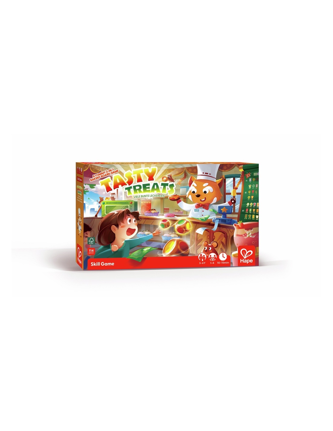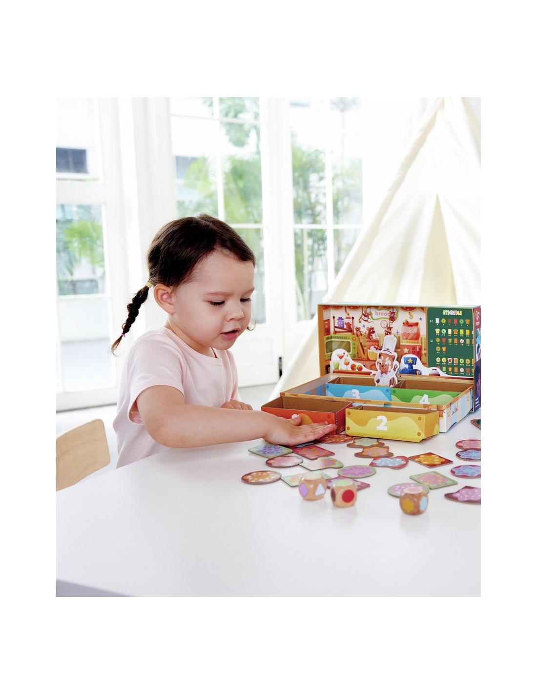 Usa tu imaginación y habilidades estratégicas para saborear las dulces recompensas de la pastelería de Molise. ¡Lanza los tres dados para ver qué pastelito te tocará! Alternativamente, puedes jugar a ser el pastelero o el cliente, elegir tu dulce y los ingredientes que prefieras, ¡y pagar la cantidad correcta!
