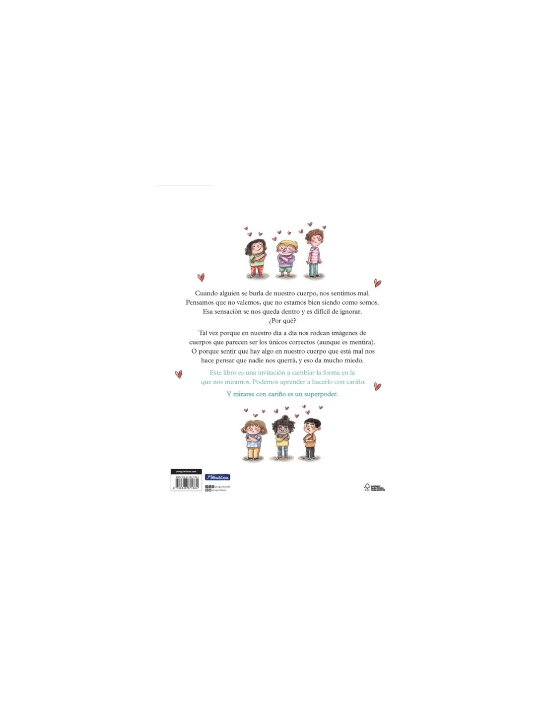 Cuando alguien se burla de nuestro cuerpo, nos sentimos mal. Pensamos que no valemos, que no estamos bien siendo como somos. Esa sensación se nos queda dentro y es difícil de ignorar. Tal vez porque en nuestro día a día nos rodean imágenes de cuerpos que parecen ser los únicos correctos. O porque sentir que hay algo mal en nuestro cuerpo nos lleva a pensar que nadie nos querrá, y eso da mucho miedo. Este libro es una invitación a cambiar la forma en la que nos miramos. Podemos aprender a hacerlo con cariño. Y mirarse con cariño es un superpoder.