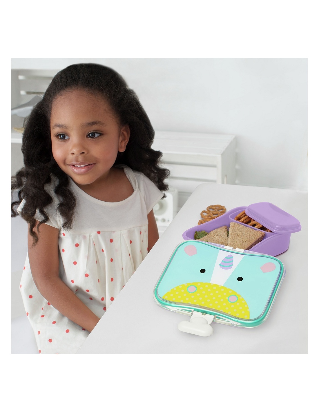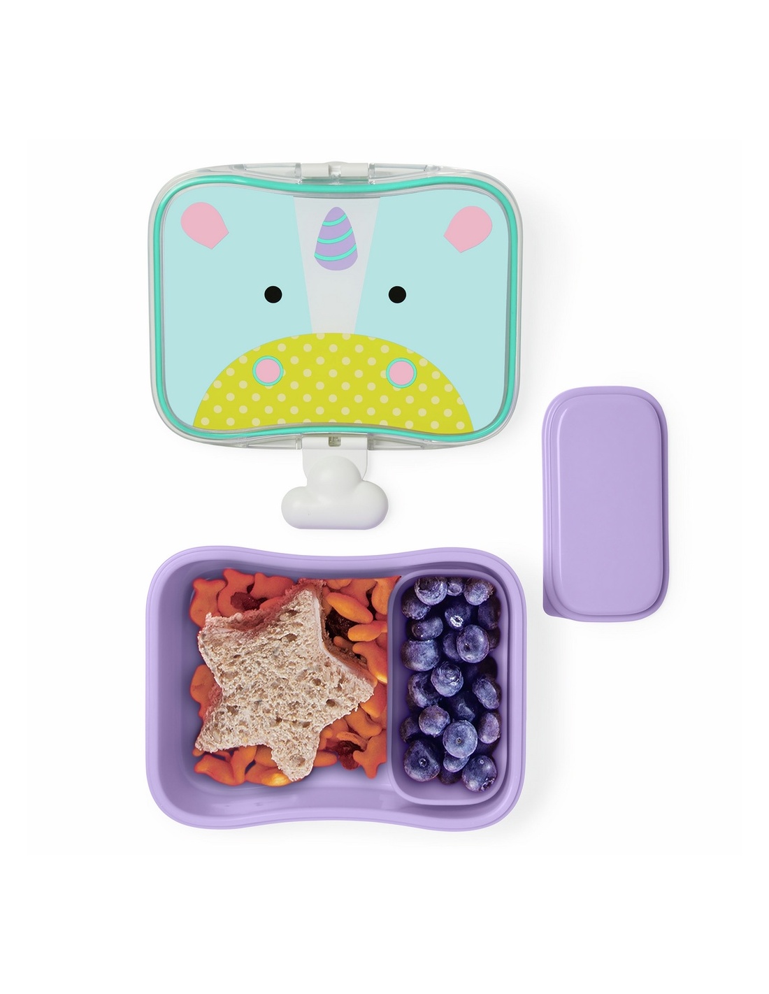 Te va a encantar este colorido set de 4 piezas, ideal para llevar el almuerzo al colegio o un tentempié al parque. El set para “niños mayores” fomenta que coman de forma autónoma e incluye un recipiente más pequeño con tapa, que cabe dentro de la fiambrera. ¡Con los clips a juego, abrir y cerrar la caja será pan comido!