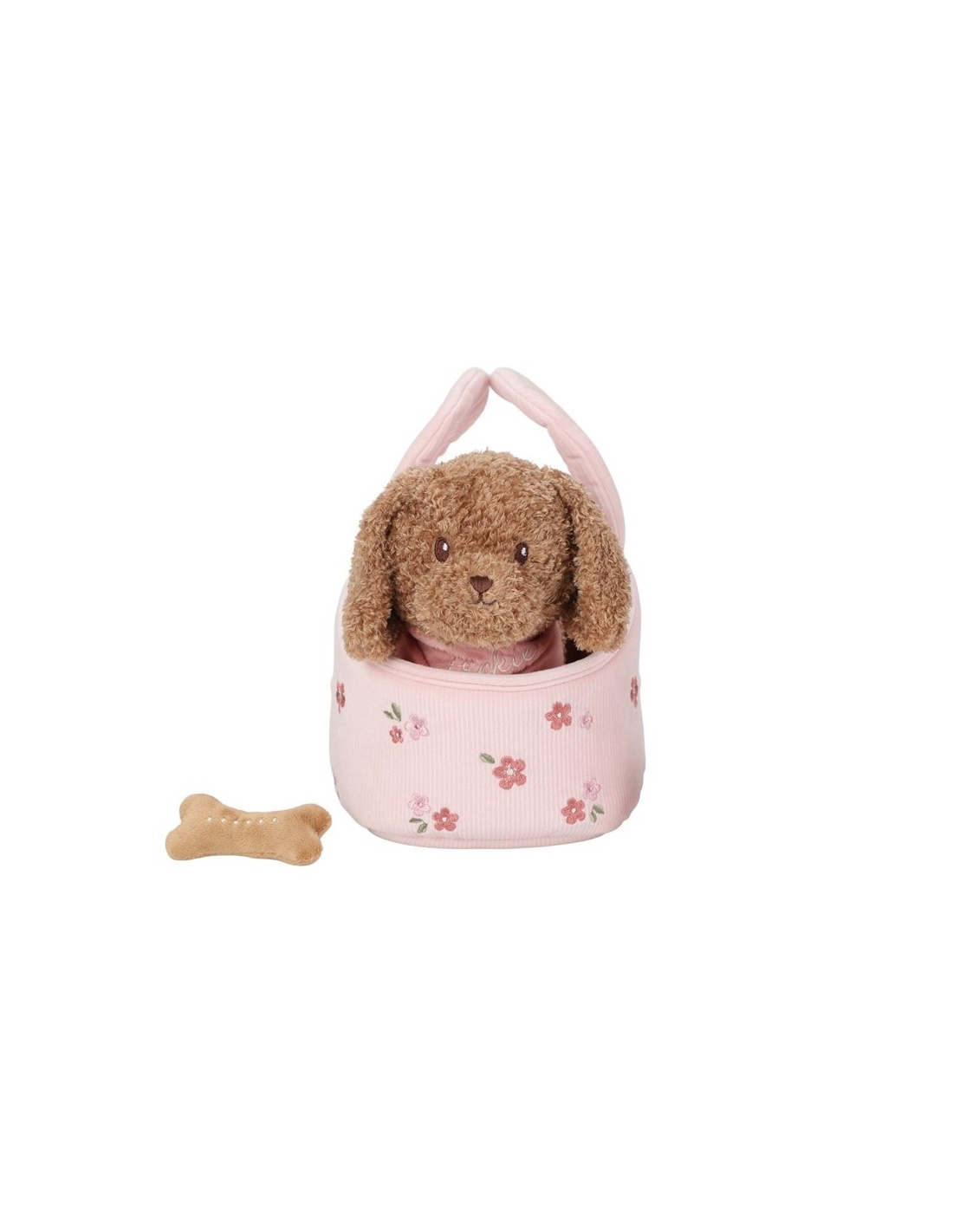 Jackie, el adorable cachorro de peluche en una bolsa de transporte floral, es el compañero perfecto para llevar a todas partes. Con su suave tela y su dulce carita, Jackie se convertirá en el peluche favorito de tu pequeño. La bolsa tiene un práctico recorte en la parte delantera para que la cabeza del cachorro pueda asomar con curiosidad.