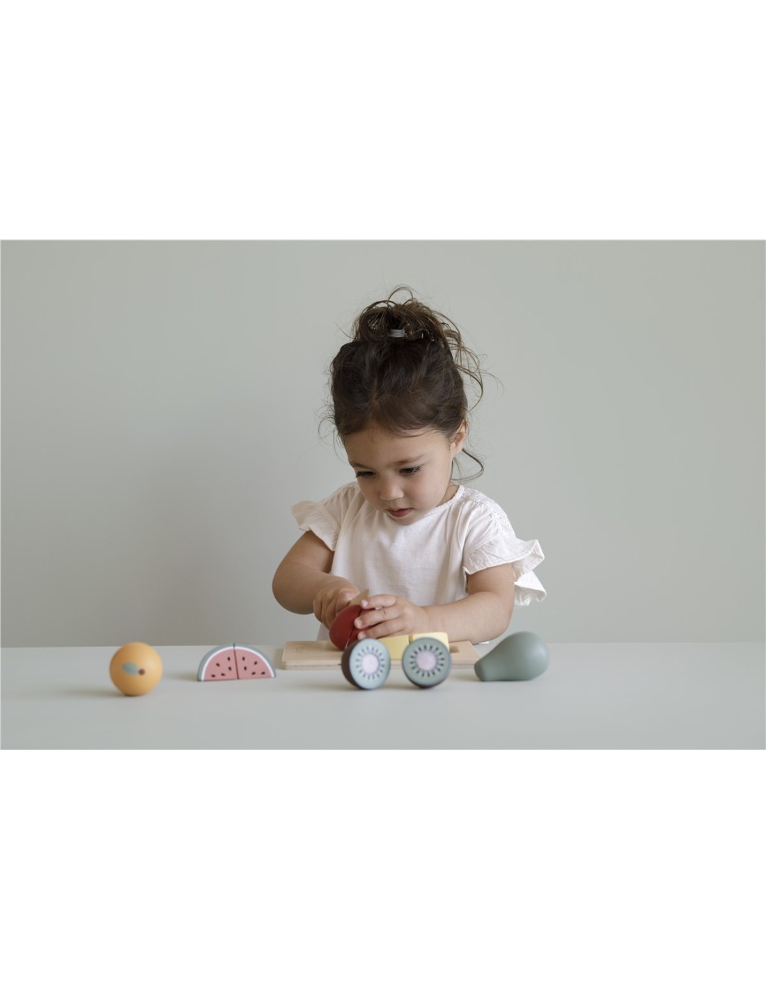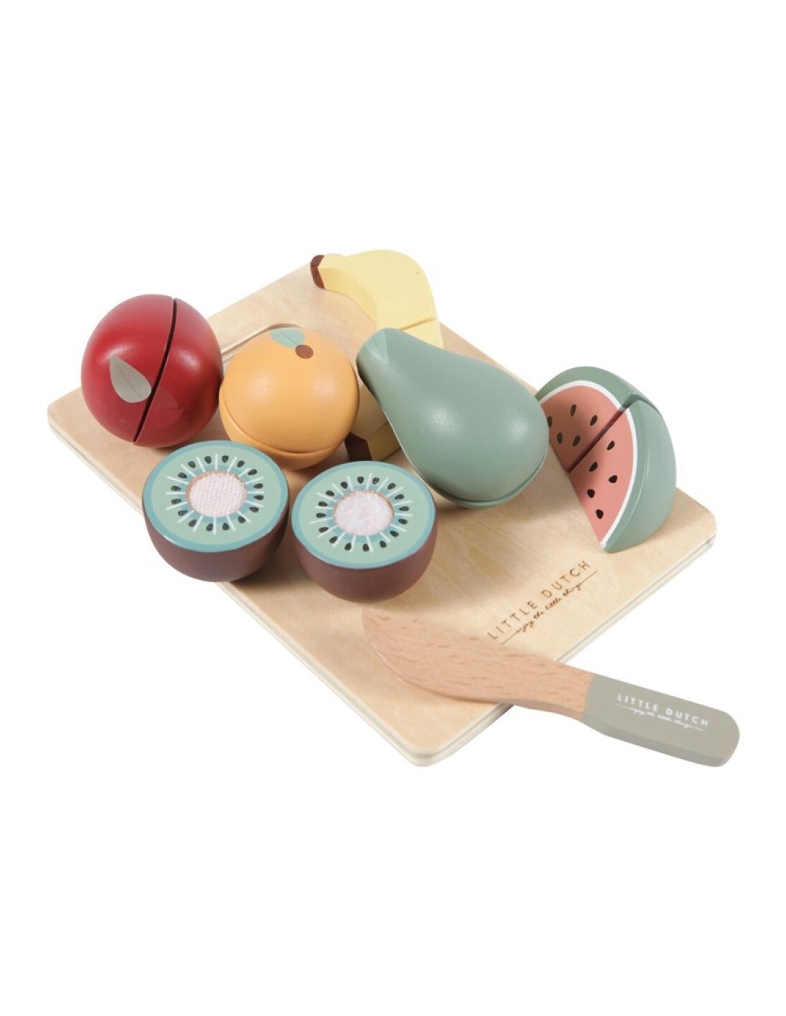 ¡Come fruta todos los días! A tu hijo le encantará copiarte para preparar una variedad de frutas con este lindo juego de madera de 6 frutas diferentes. Se incluyen una tabla de cortar y un cuchillo de madera para dividir las frutas por la mitad. ¿Cual es tu favorita? ¿Manzana, plátano, kiwi, pera, naranja o una rodaja de sandía? Todas las frutas se pueden volver a unir fácilmente con velcro.
