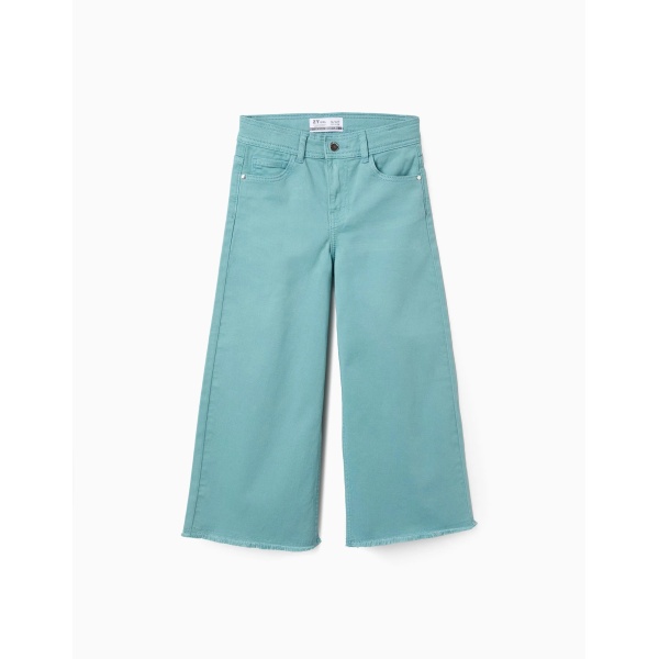 Pantalón wide leg para niña en suave sarga verde agua, con un diseño amplio y relajado que combina comodidad y estilo. Su corte moderno de pierna ancha lo convierte en la prenda perfecta para crear looks urbanos y desenfadados.