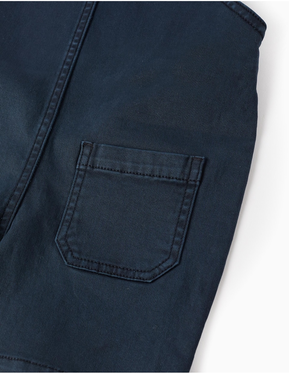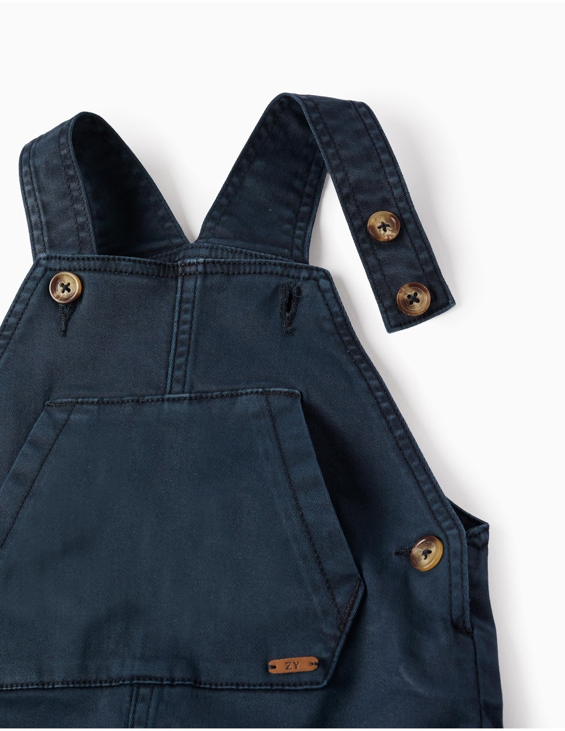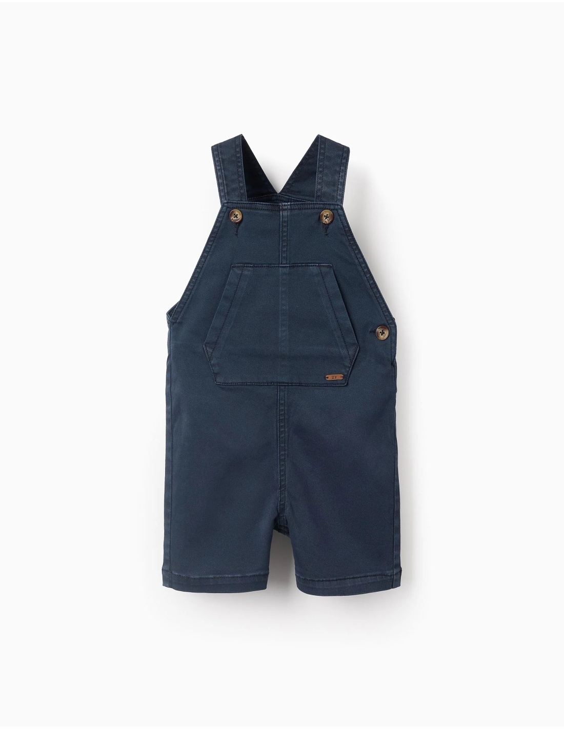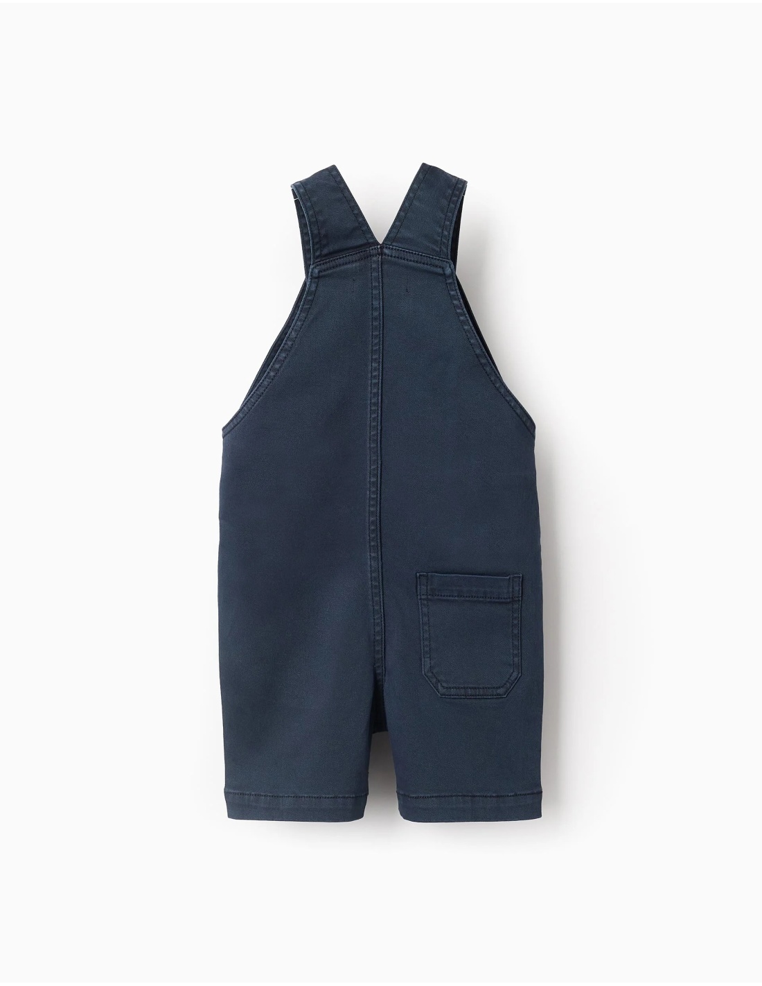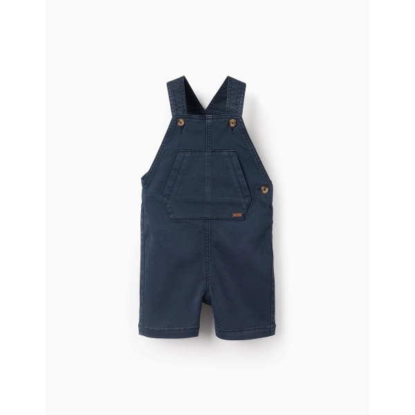Este peto de sarga azul oscuro, confeccionado en algodón con un toque de elasticidad, está diseñado para acompañar cada movimiento con total confort. Su tejido suave y flexible lo convierte en un básico imprescindible para el armario del bebé.