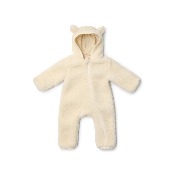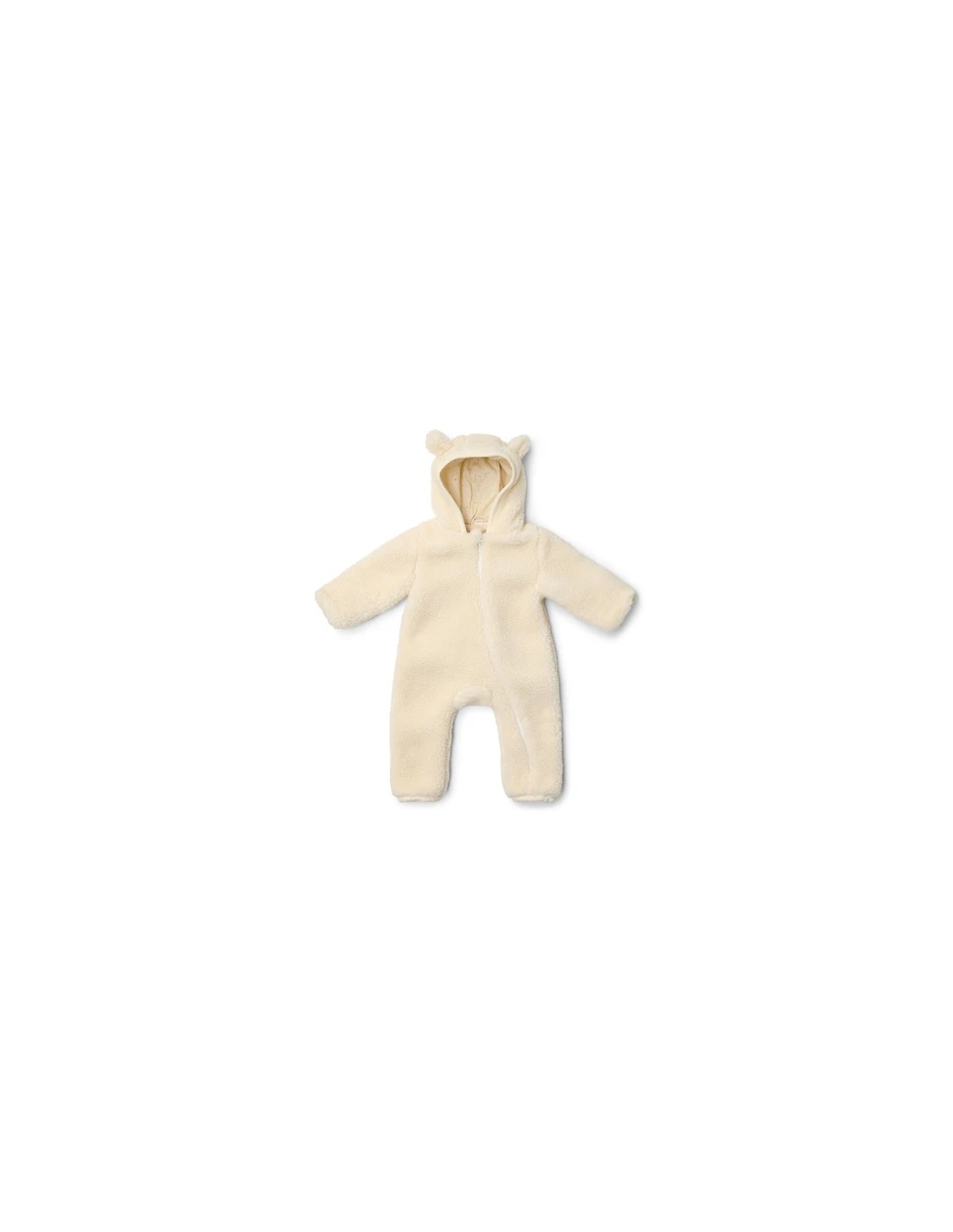 Este enterito de color blanco hueso está diseñado para brindar la máxima comodidad. Está confeccionado con un suave y cálido tejido tipo "teddy" que mantiene a tu pequeño maravillosamente abrigado. El interior está forrado con algodón orgánico y decorado con un tierno estampado de Little Goose (Pequeño Ganso).Gracias a la práctica cremallera en la parte delantera, el enterito es fácil de poner y quitar. Las orejitas de conejito en la capucha le dan un toque encantador y juguetón. Además, los cubrepuños en las mangas y las perneras aseguran que tu bebé se mantenga bien calentito en los días fríos.