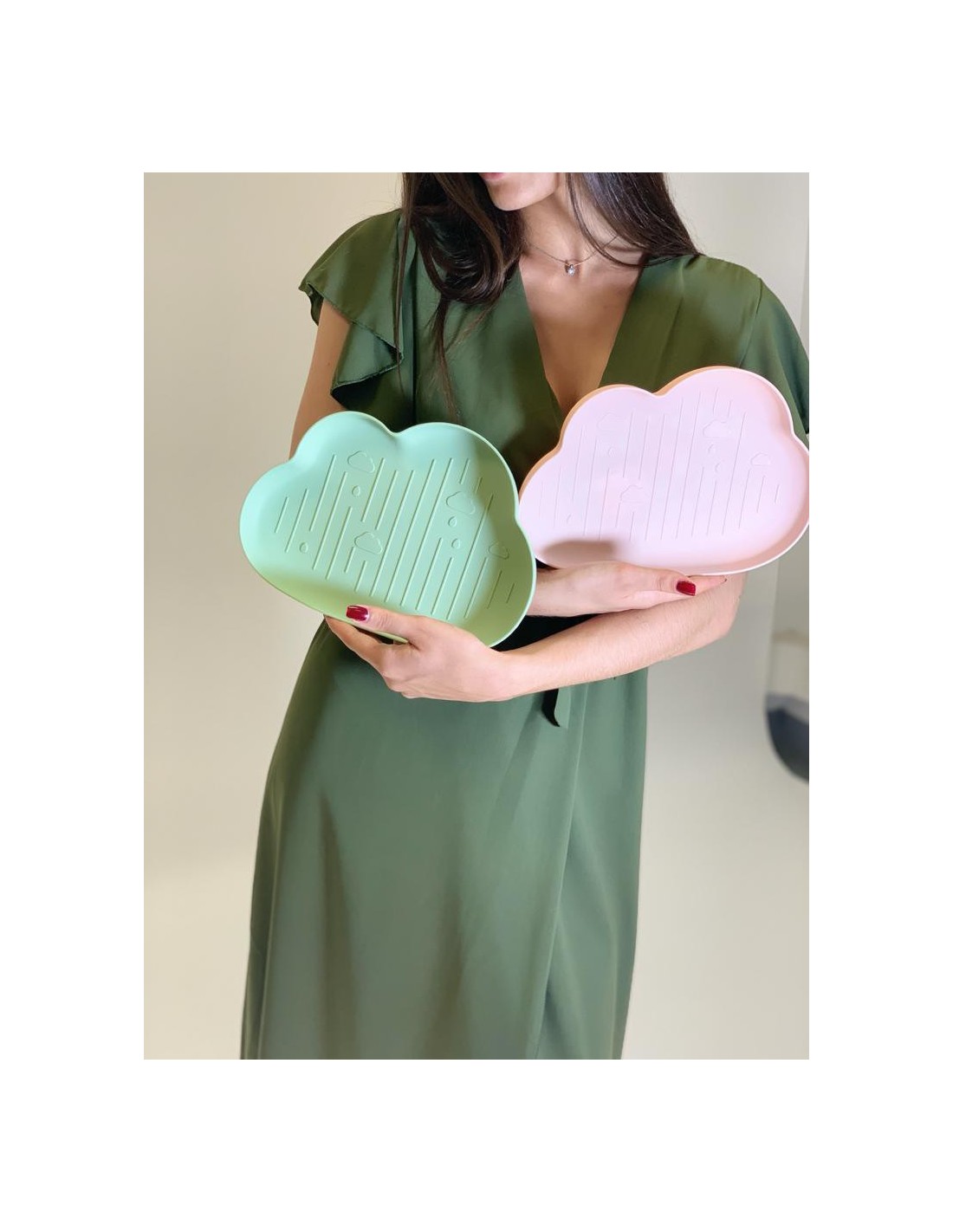 Plato de color rosa pastel con forma de nube.