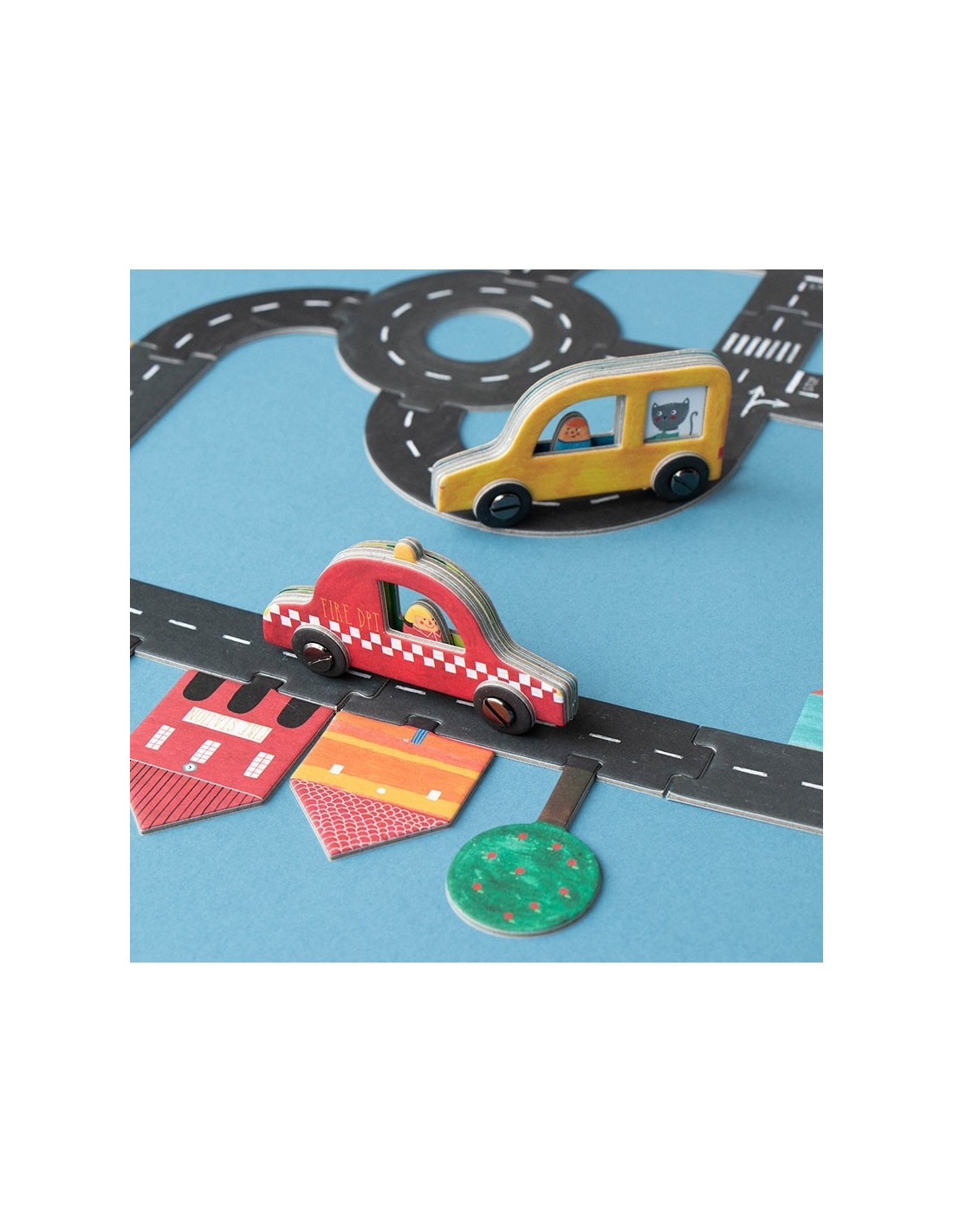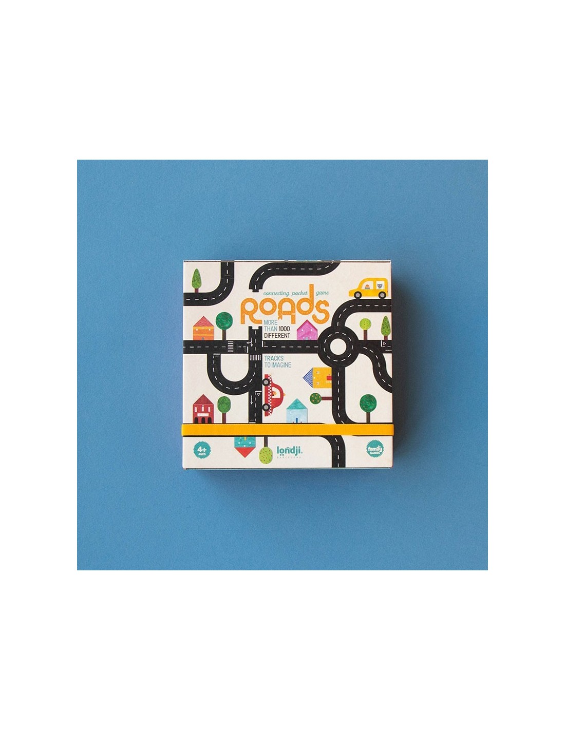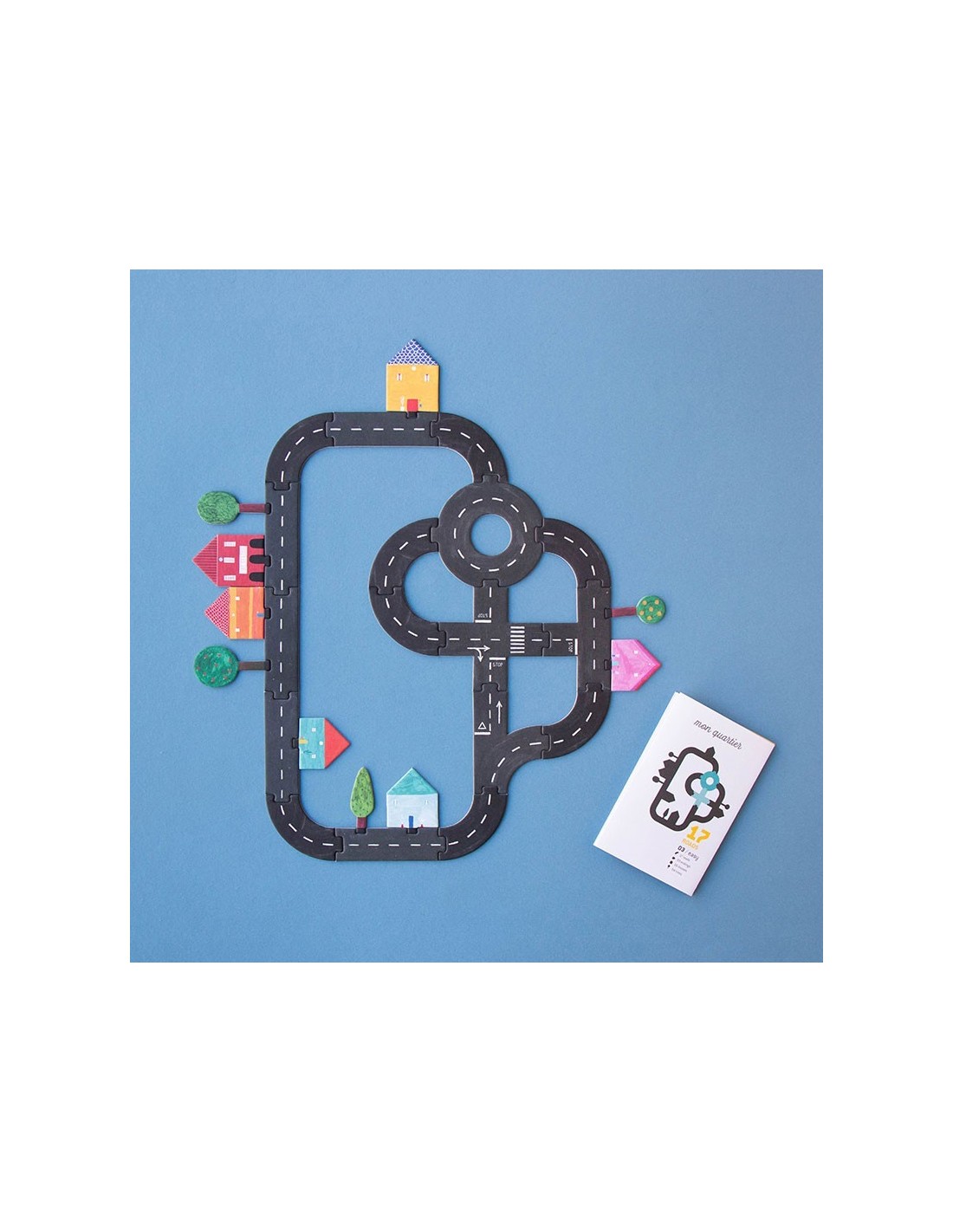 Este juego permite construir circuitos de carreteras de manera libre o siguiendo uno de los 11 modelos desafiantes que propone el folleto. Incluye varias carreteras, dos coches y una versión de bolsillo para disfrutar en cualquier lugar. Es un juego creativo, familiar, sostenible y de proximidad, ideal para divertirse mientras se desarrollan habilidades de resolución de problemas y creatividad.
