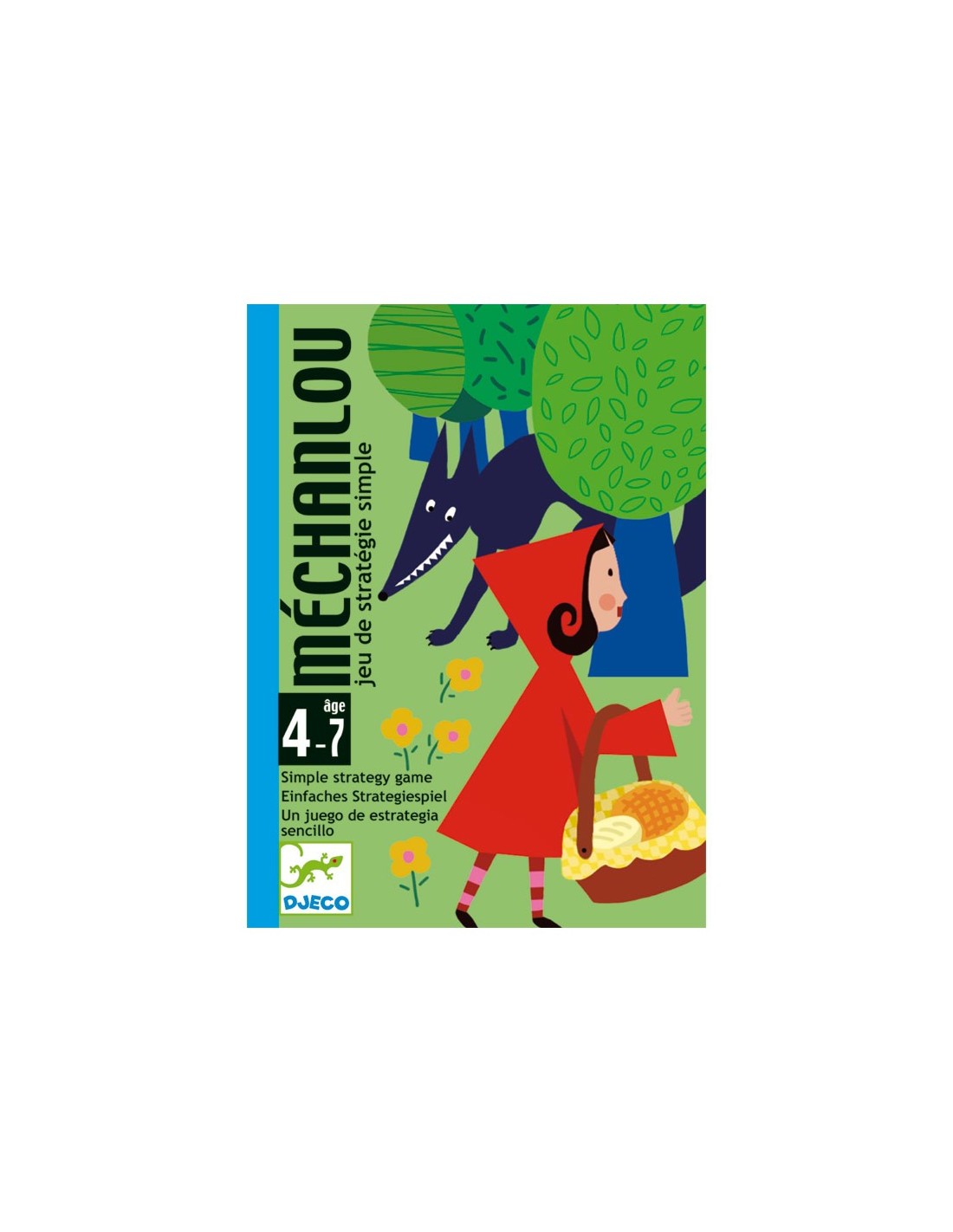 Un juego donde le objetivo es conseguir las 6 cartas que narran el cuento de Caperucita Roja. Para poder sacar cartas de nuestros jugadores debemos de tener la carta del lobo, aunque el contrincante tendrá la oportunidad de sacar las tarjetas del centro que simulan un bosque para sortear la suerte, si saca el cazador se habrá librado pero si de lo contrario saca un lobo podremos robar la carta.