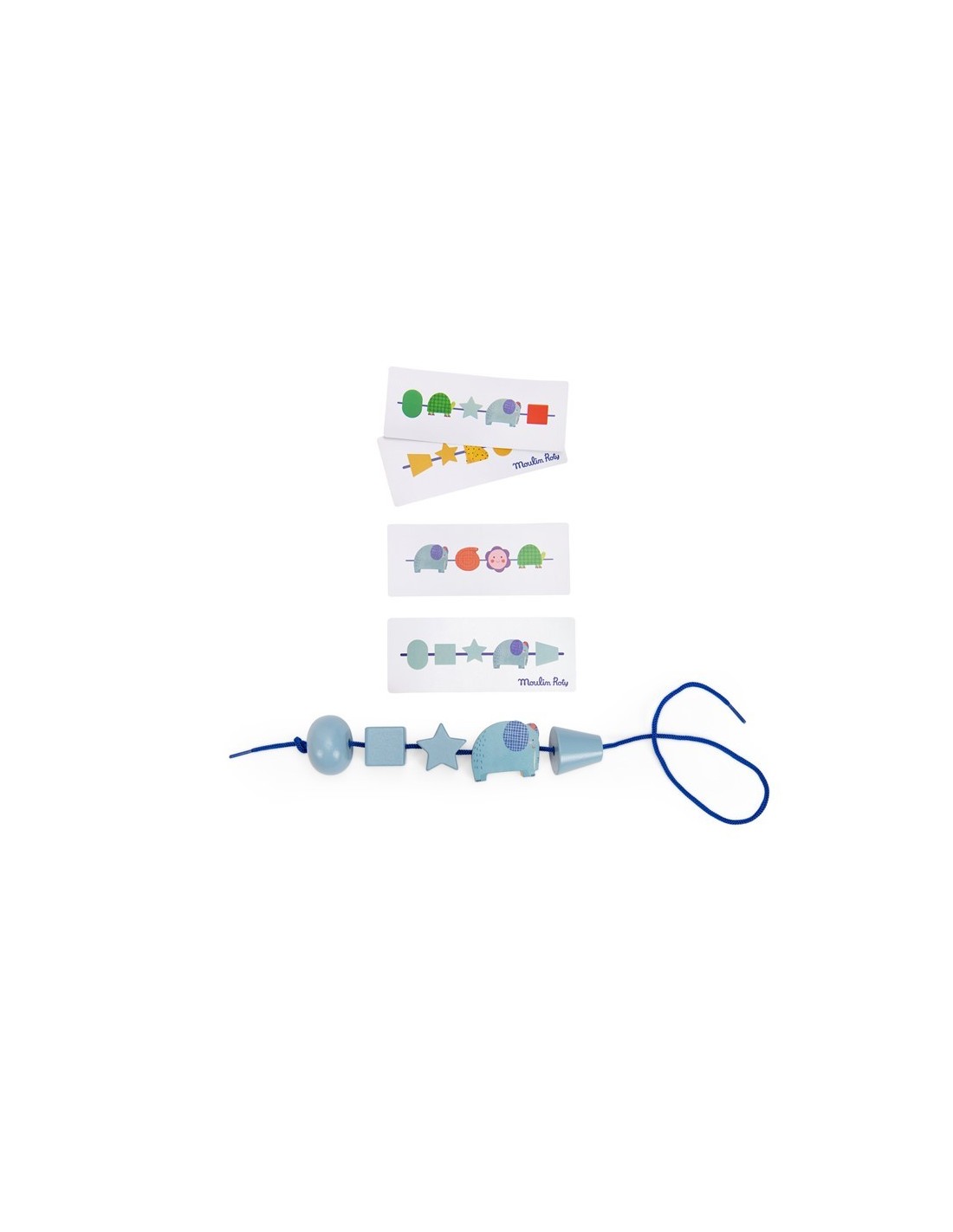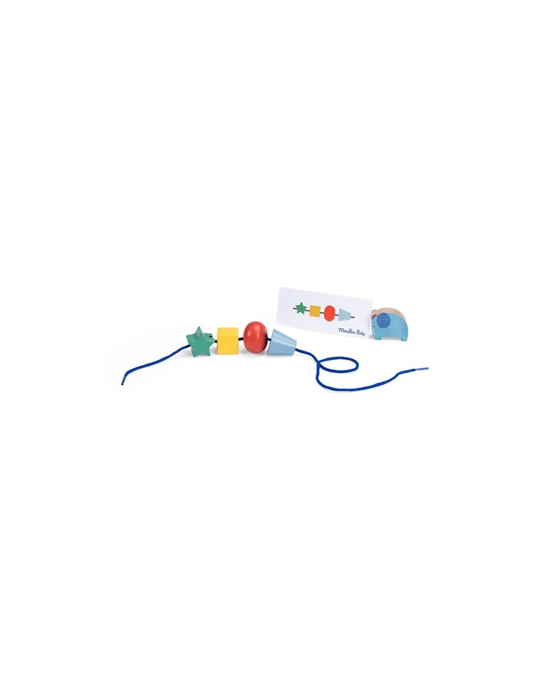 Un juego que incluye 21 figuras de madera y 2 cordones. Tiene doble función, la posibilidad de jugar con las piezas mediante juego simbólico y de aprendizaje de formas y colores y la de desarrollar la motricidad fina y ensartar cada figura a través del cordón.