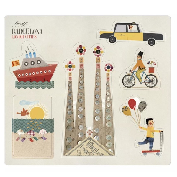 Un recuerdo de tu visita o un recordatorio en tu nevera de la gran ciudad en la que vives. Estos imanes con ilustraciones referentes a Barcelona con el particular e inigualable diseño de Londji, serán un regalo perfecto.
