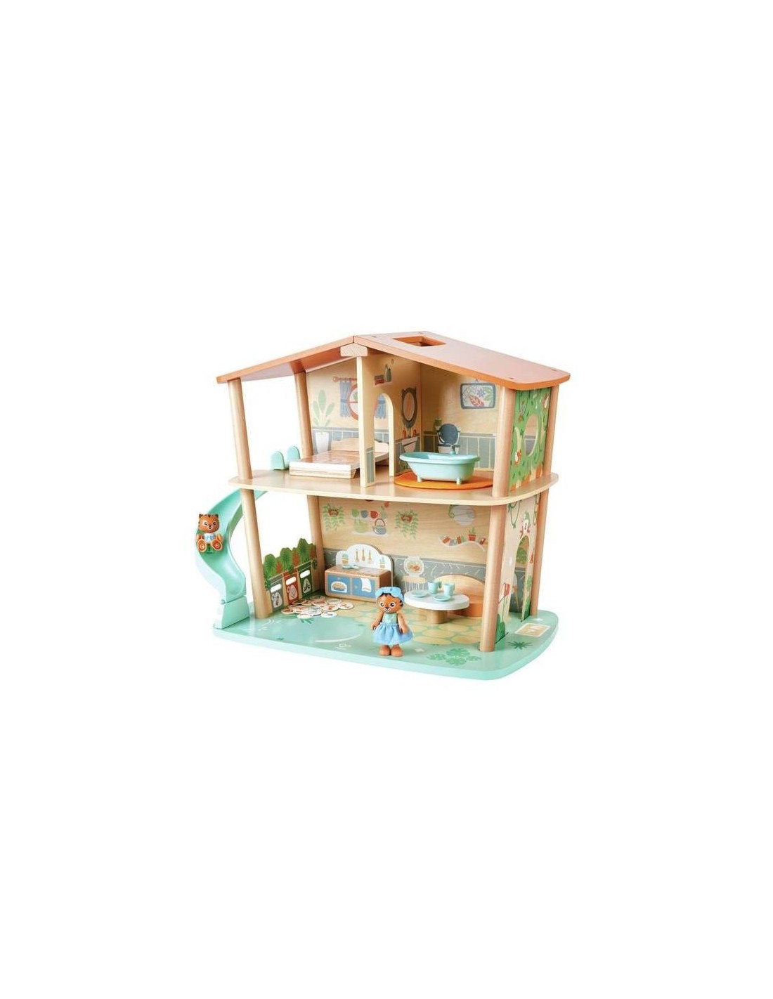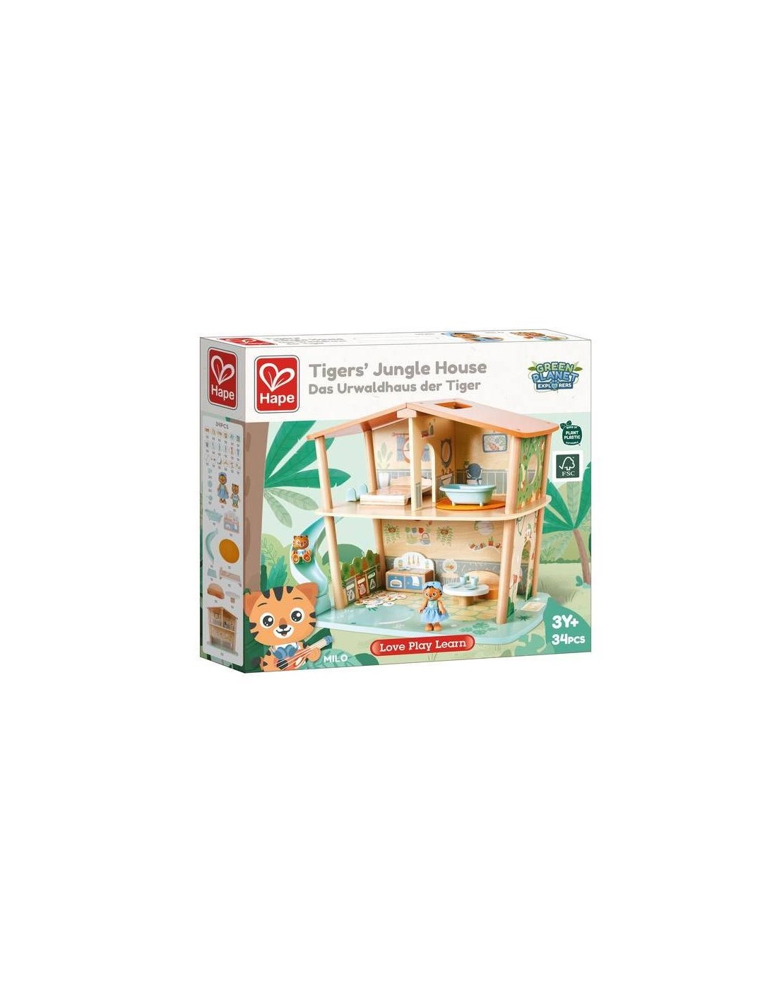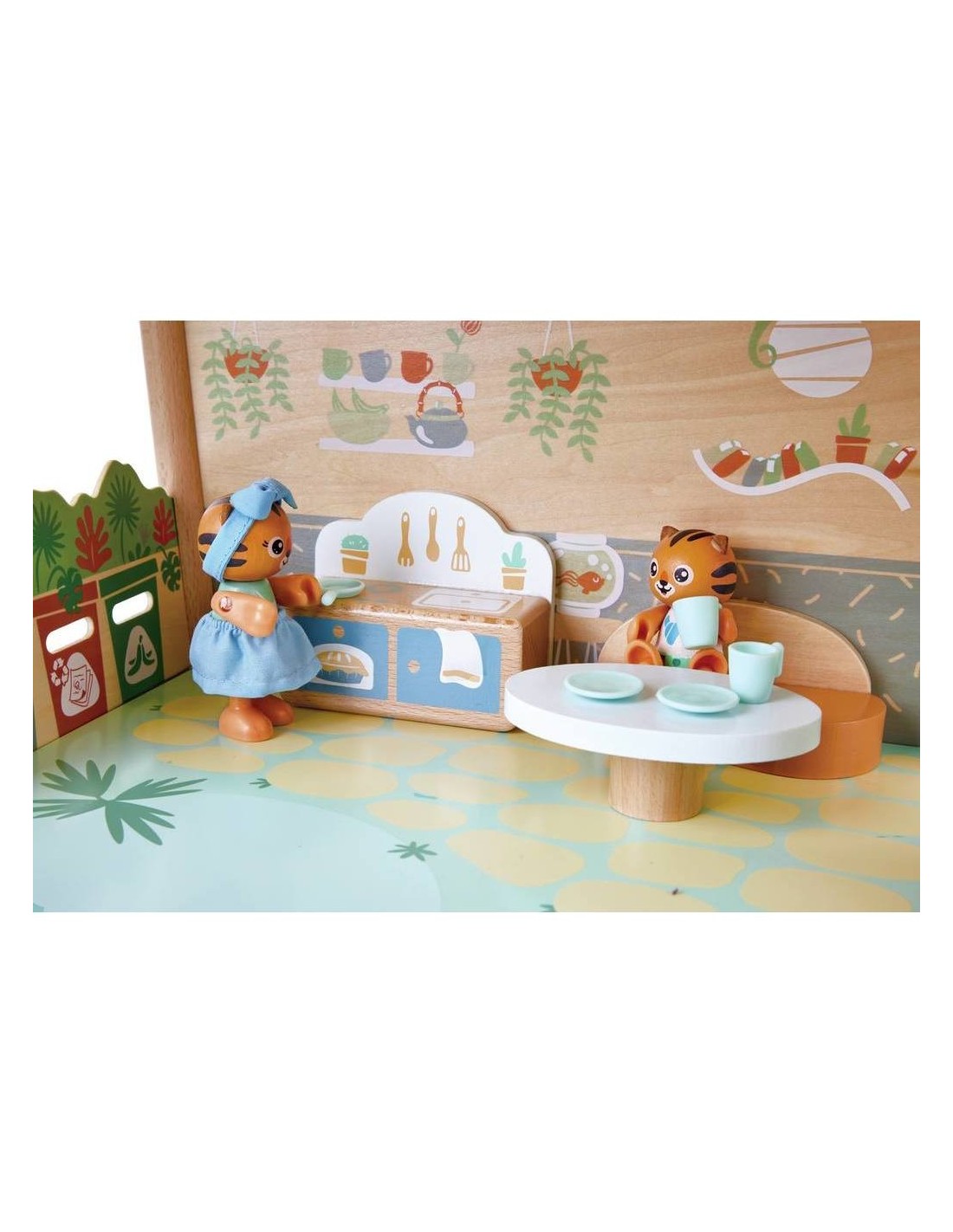 La casa de juegos y las figuras están hechas de materiales sostenibles como PE verde y bambú, que también cuentan con la certificación FSC®.