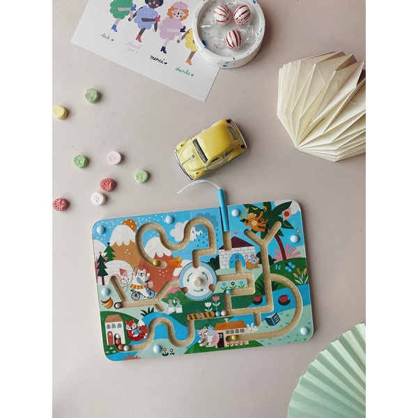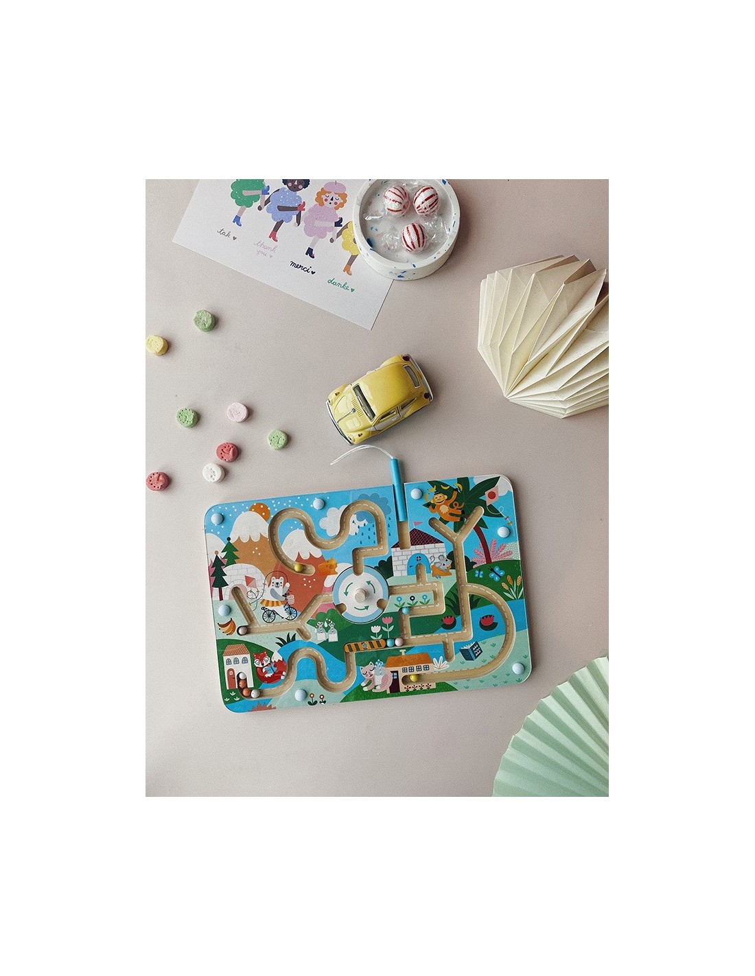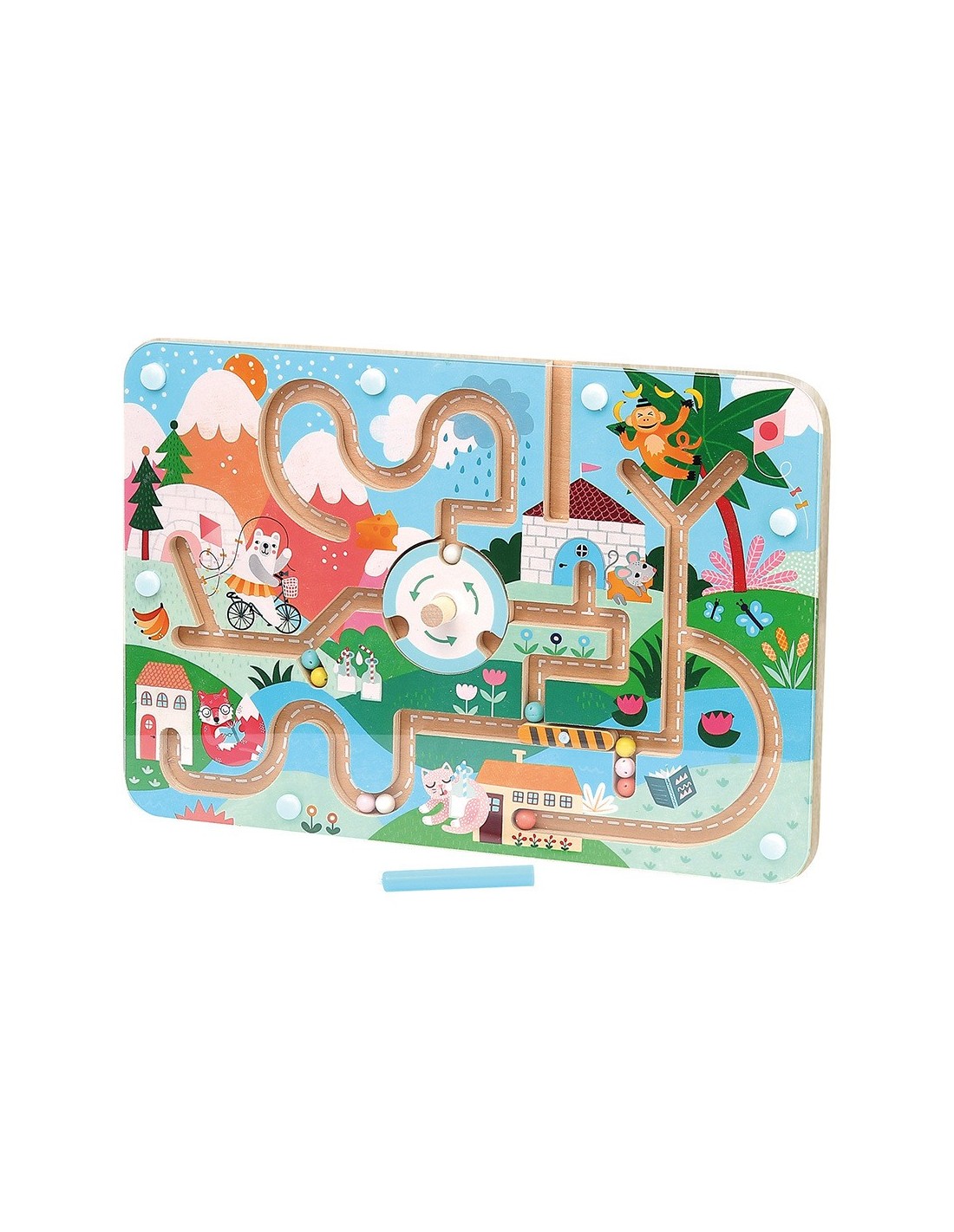 Con un pequeño lápiz magnético los peques tendrán que dirigir las bolitas en dirección a los animales, haciendo girar la rueda para pasar hacia el otro lado. Juguete fácilmente transportable gracias a su cristal de protección de plexiglás.