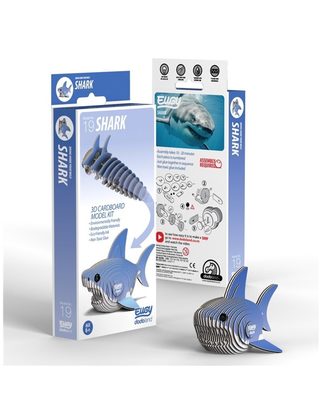 Divertidas figuras de cartón montables en 3D. Son sencillos de construir. Se requiere entre 20-30 minutos. Cada pieza está numerada y se superponen en secuencia numérica usando un pegamento orgánico no tóxico incluido. Utiliza tinta natural hecha de arroz. Una simpática y didáctica manera de decorar los estantes de una habitación.