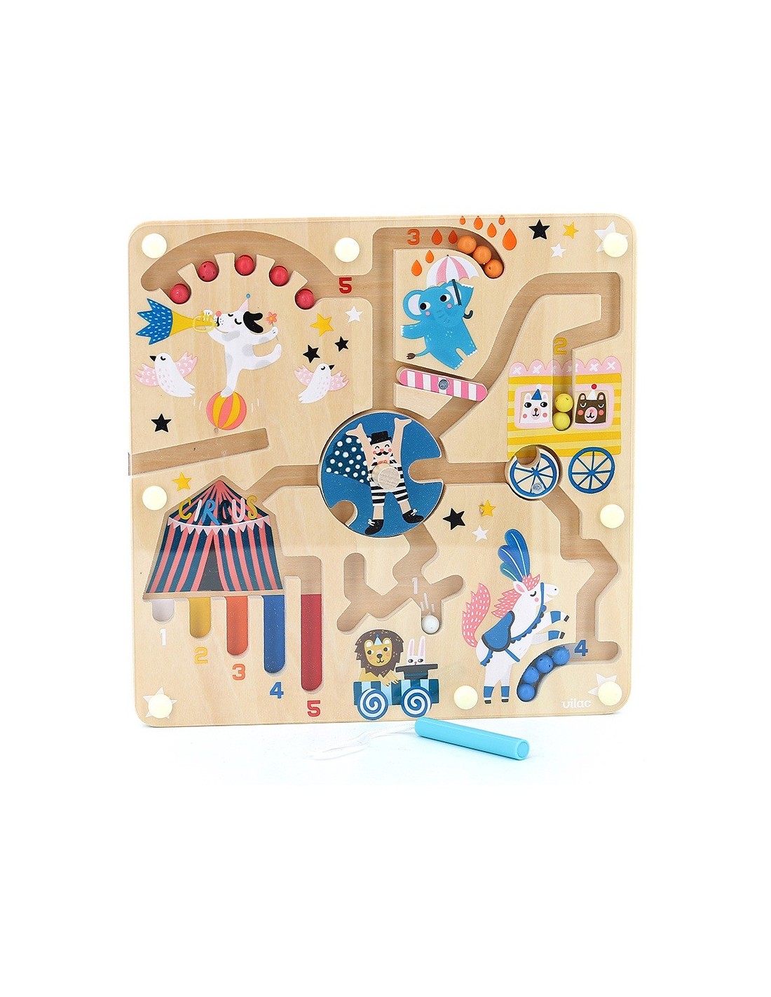 Con un pequeño lápiz magnético los peques tendrán que dirigir las bolitas en dirección a los animales, haciendo girar la rueda para pasar hacia el otro lado. Juguete fácilmente transportable gracias a su cristal de protección de plexiglás.