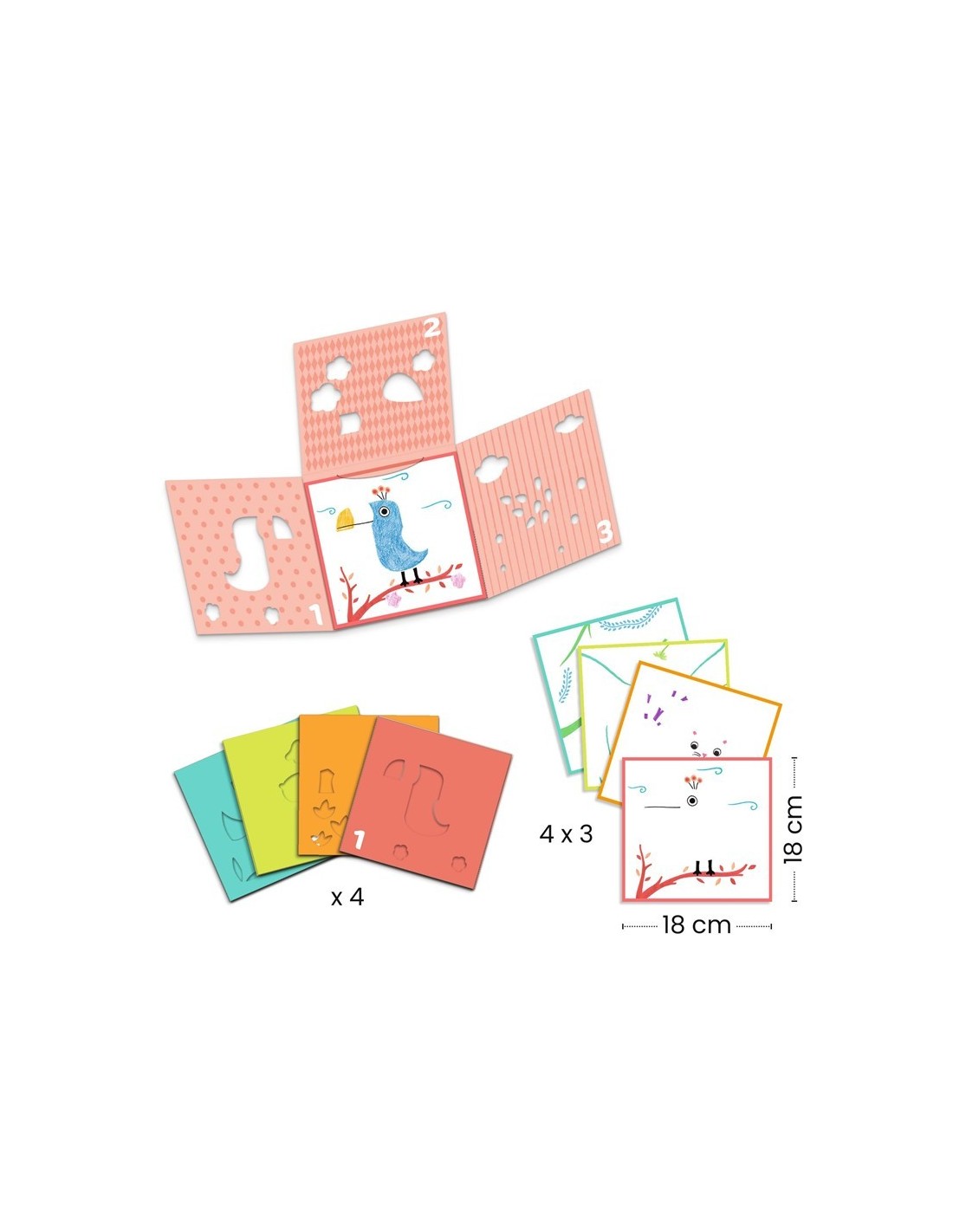 4 juegos de 3 estuches y un montón de hojas impresas para dibujar bonitos animales.