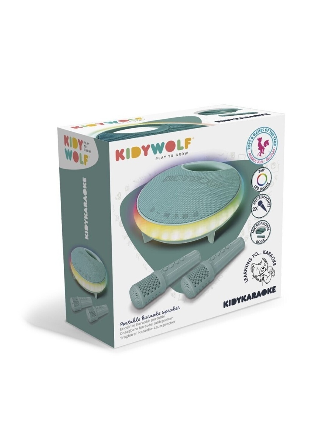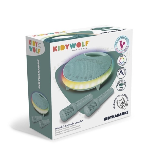 ¡Desata tu estrella con KIDYKARAOKE! Disfruta de épicos dúos con dos micrófonos inalámbricos y personaliza tu voz con 3 efectos divertidos. Sus luces multicolores crean una atmósfera festiva. Fácil de transportar, con asa y batería recargable USB-C, es perfecto para usar en casa, al aire libre o donde quieras.