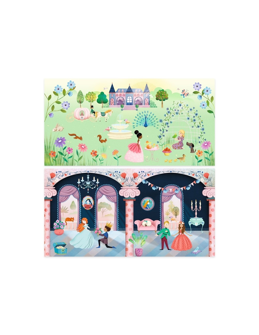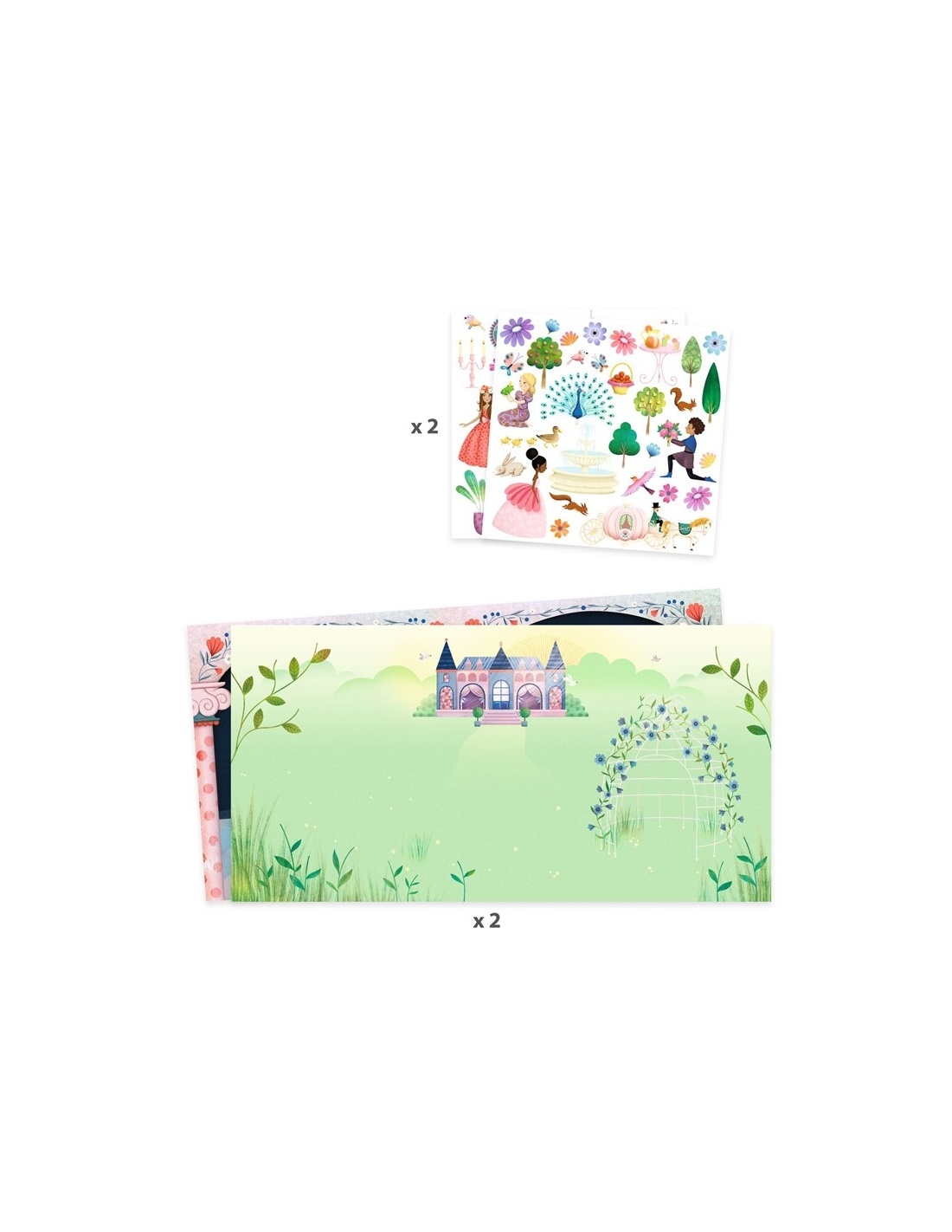 Contiene: 1 estuche rígido con 2 grandes panoramas (44 x 22 cm) y cincuenta pegatinas de vinilo reutilizables.