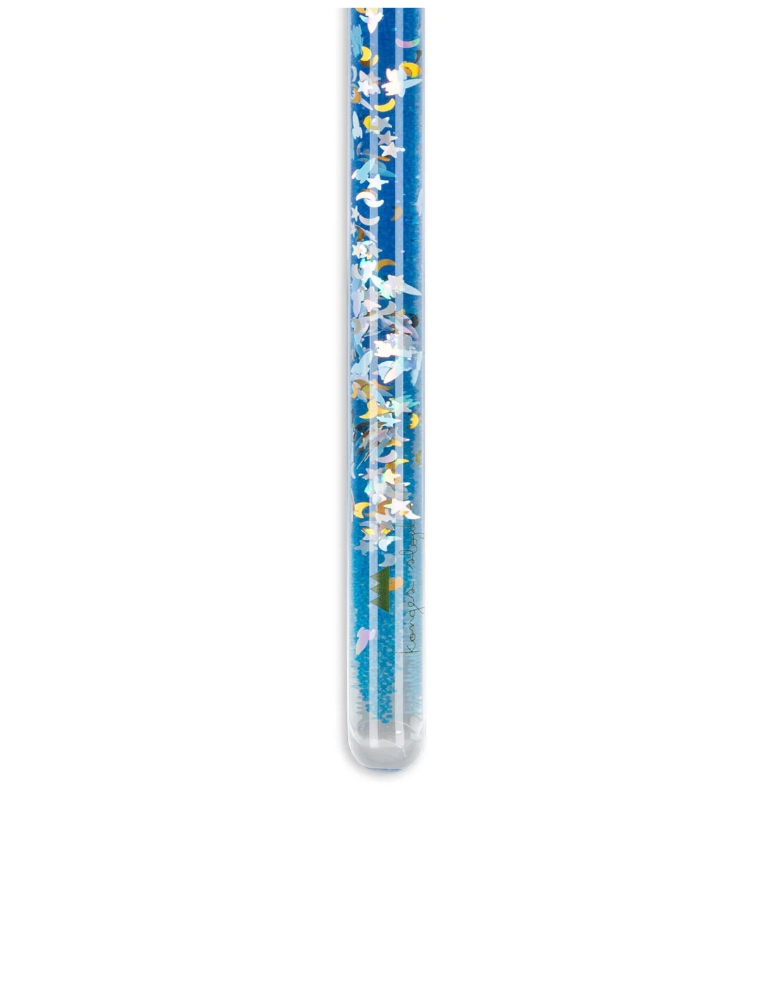 Una varita mágica con purpurina en su interior. Al darle la vuelta, la purpurina gira y baila creando un efecto hipnótico y encantador. Un clásico de la infancia reinterpretado con el delicado y poético estilo de Konges Sløjd.