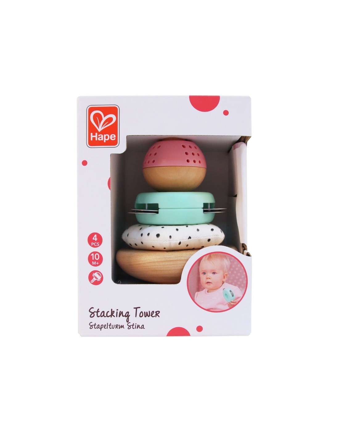 Esta divertida torre de apilamiento tambaleante es una maravillosa experiencia sensorial para tus pequeños. ¡Con una estrella de textura arrugada, una mini-pandereta tintineante y una bola de cuentas que vibra para apilar en la base tambaleante!