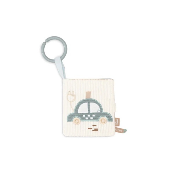 Con cuatro páginas de tela acanalada súper suave en tonos Sea Green y Cloud Blue, este libro es perfecto para las manitas curiosas de tu peque. Cada página está llena de sorpresas: sonidos crujientes, cordones divertidos y espejitos adorables con forma de semáforo.